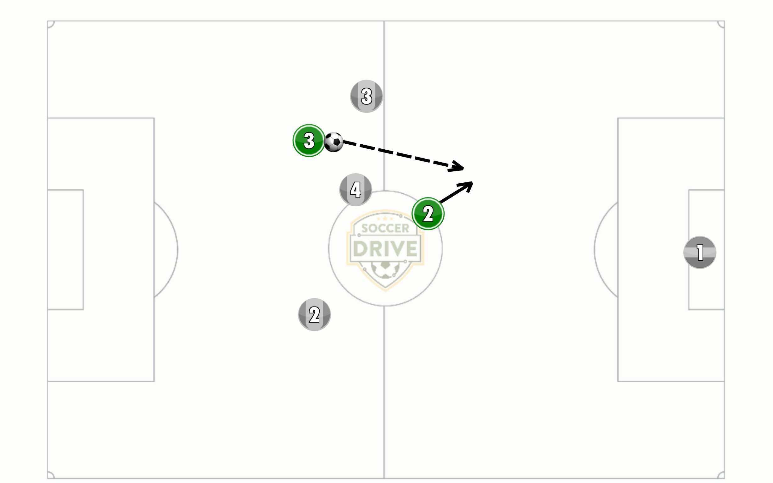 Onside Example: The attacking player is in their own half when the ball is played. You cannot be offside if you start from your own half.