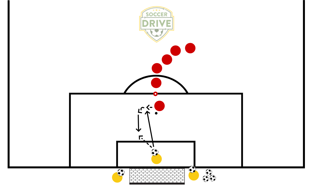 - The GK starts with the ball and rolls it to the attacker, who has to shoot it with one touch.