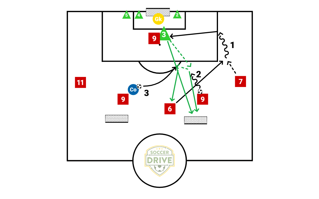 Progression 2 – Allow an attacker to make a run into the circle to receive and finish.