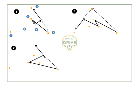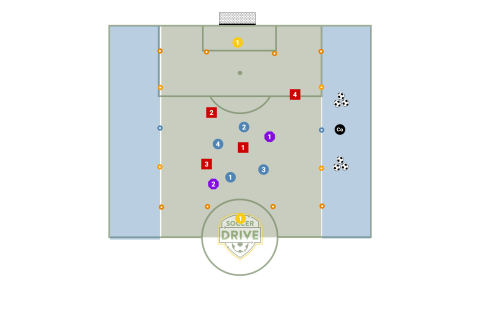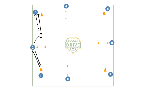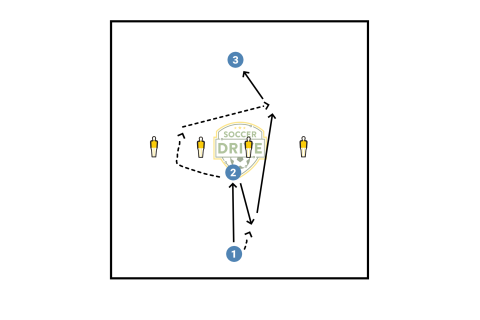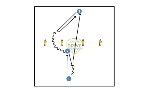 Midfield playing to striker drill