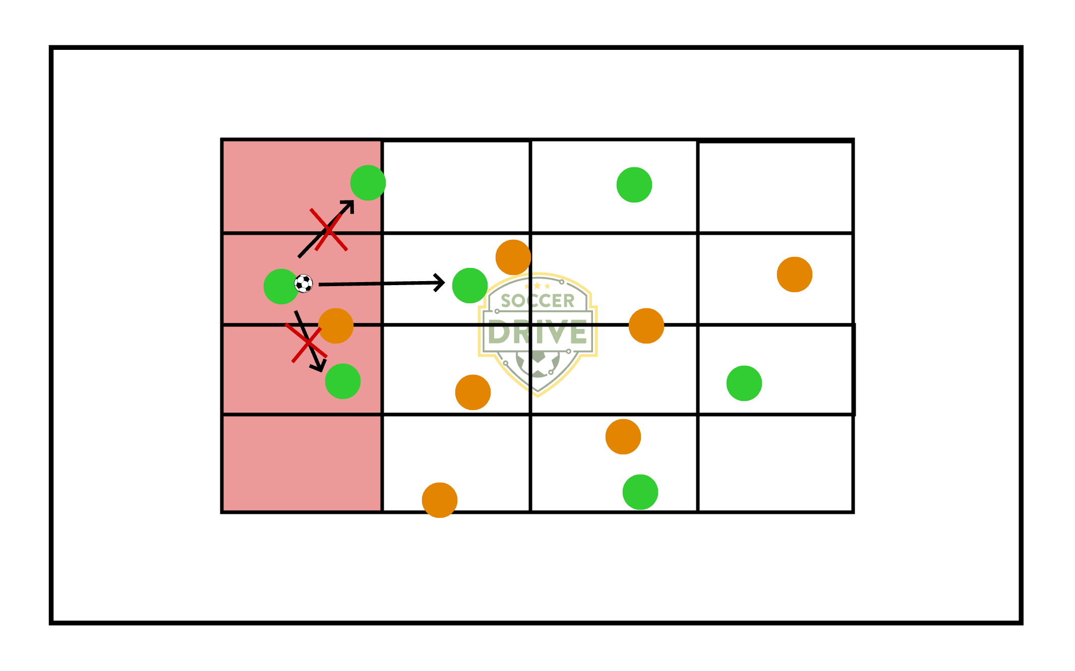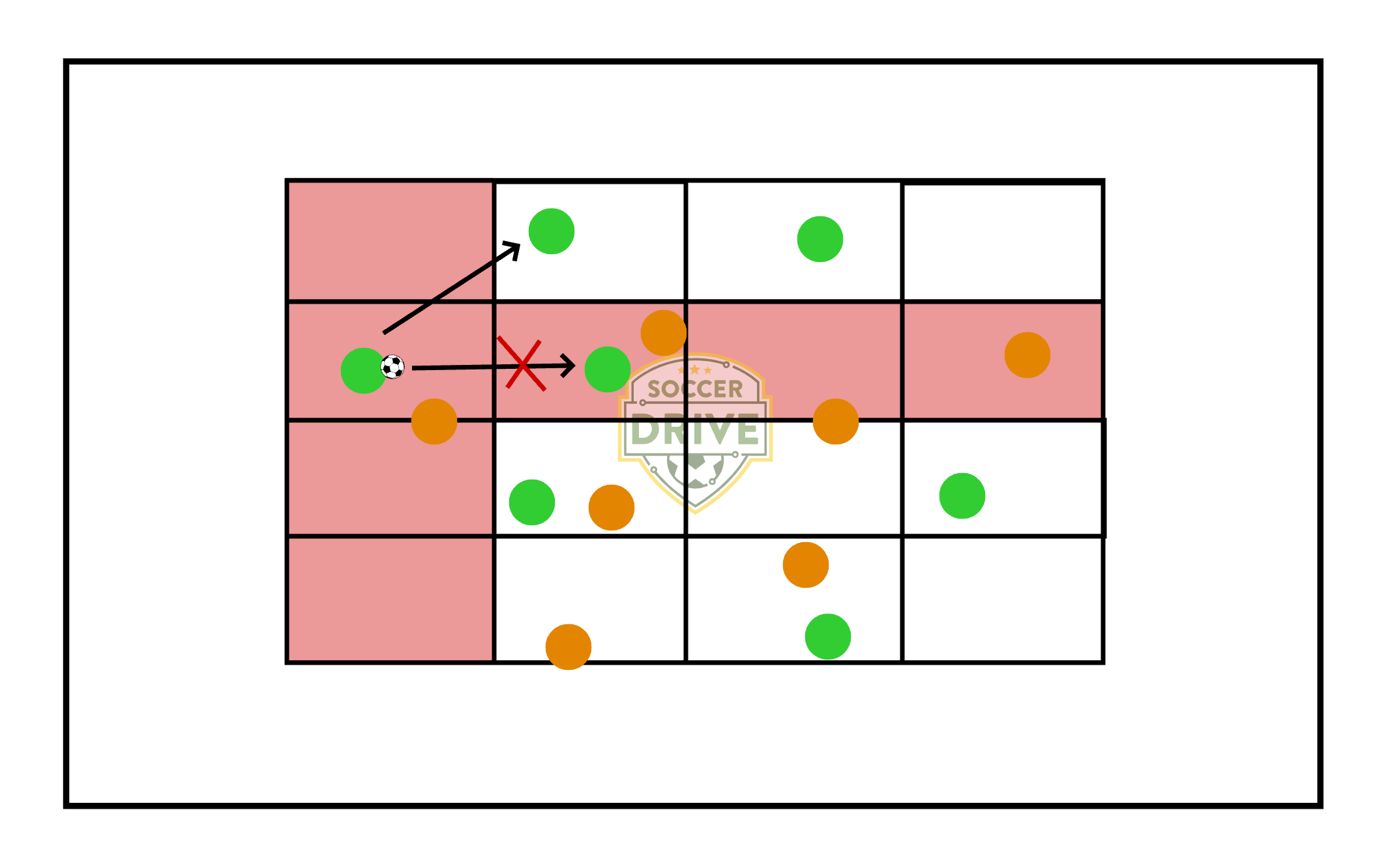 Move ball in possession without passing the ball in the horizontal channel AND the vertical channel