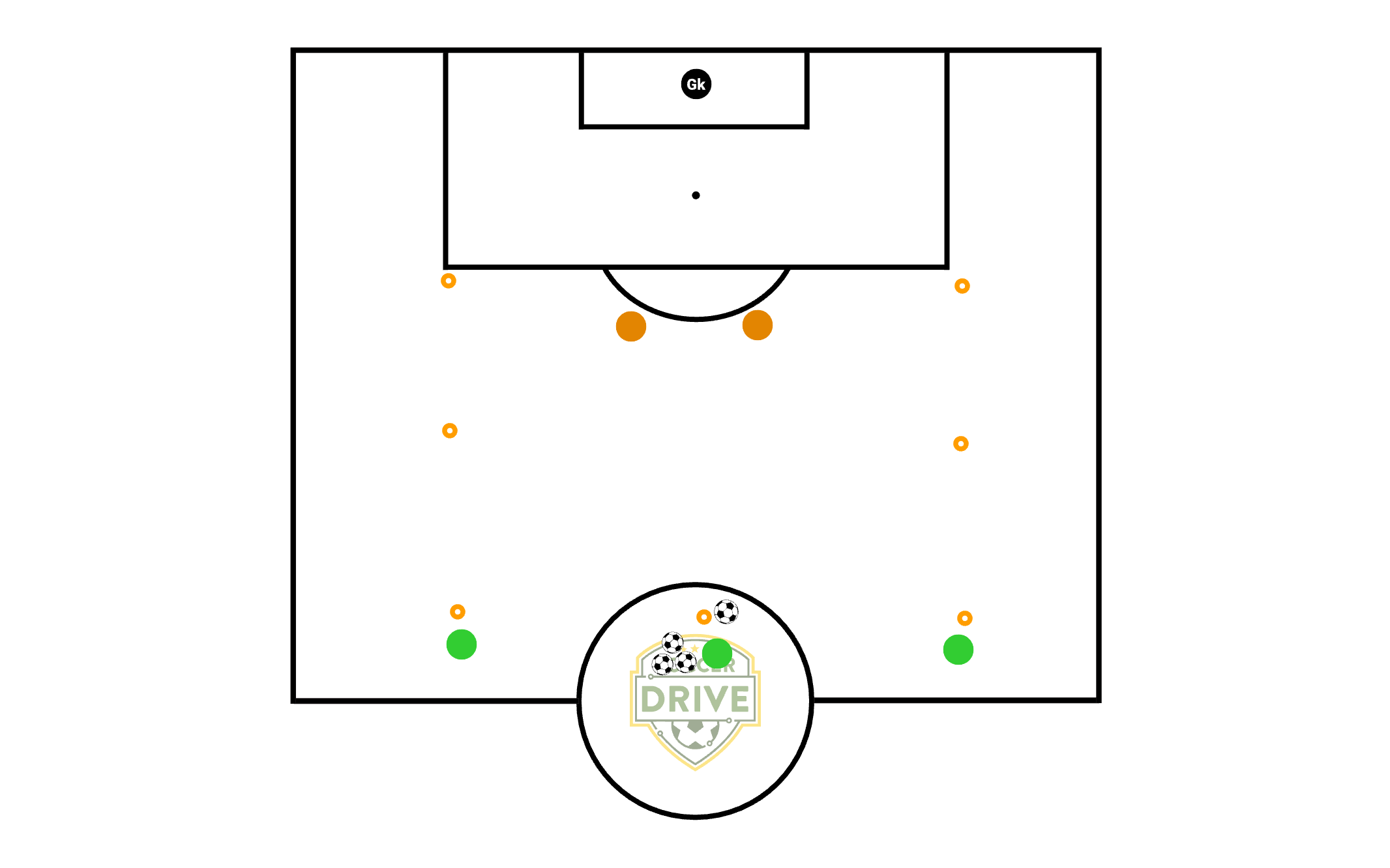 - All the soccer balls start with the center-cone attackers.