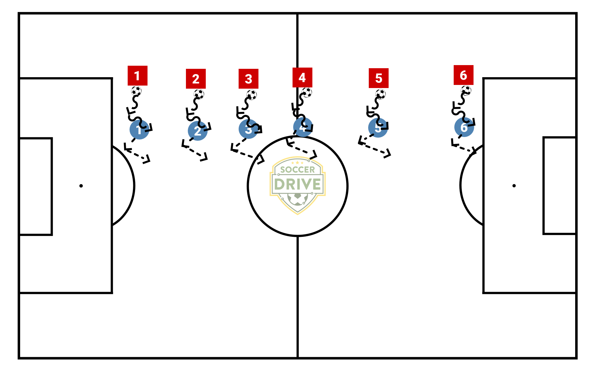 In first progression, dribbler should push ball too far out, without alerting defender, close to the end. Back needs to quickly step in and shield the ball, putting their body between attacker and ball. May also execute another move to take the ball away. They should not just be lunging, though, when the ball is close to the attacker's feet.