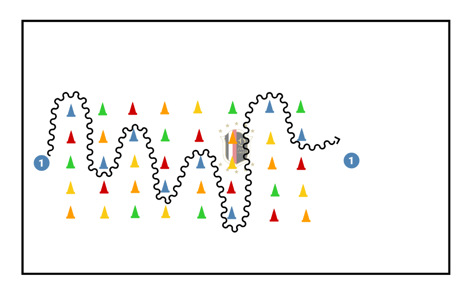 Variation 2: Same as variation 1 but call the next players out after they pass 3rd color cone. Watch out for your teamates!