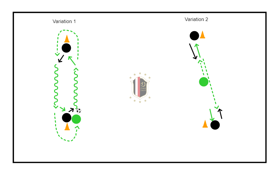 Pass should be short not long. Switch players after one minute rotate 2-3 times.