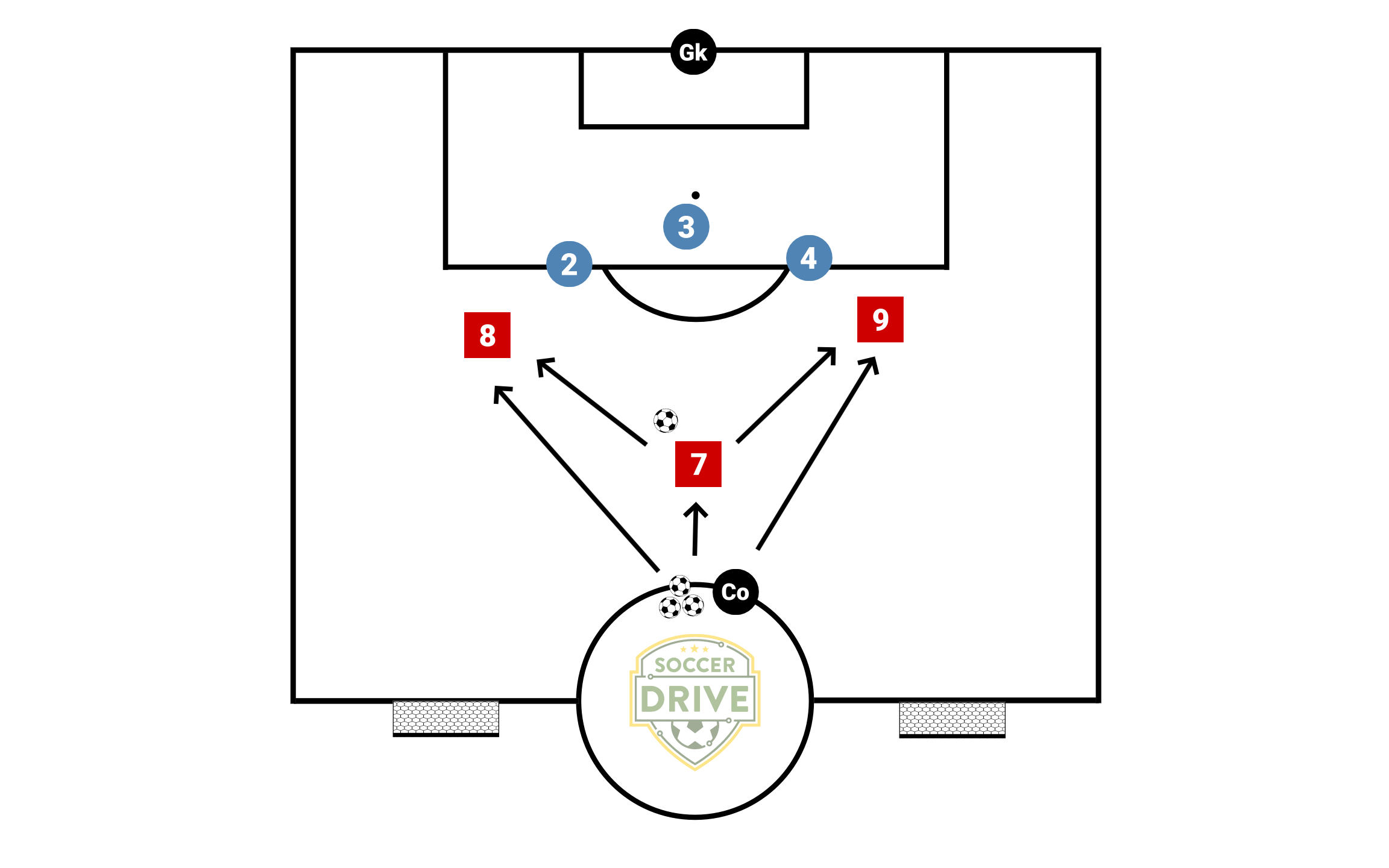 If/when defenders win the ball, looking for at least one pass before going for the goals (trying to avoid simply tackle & hoof it clear).