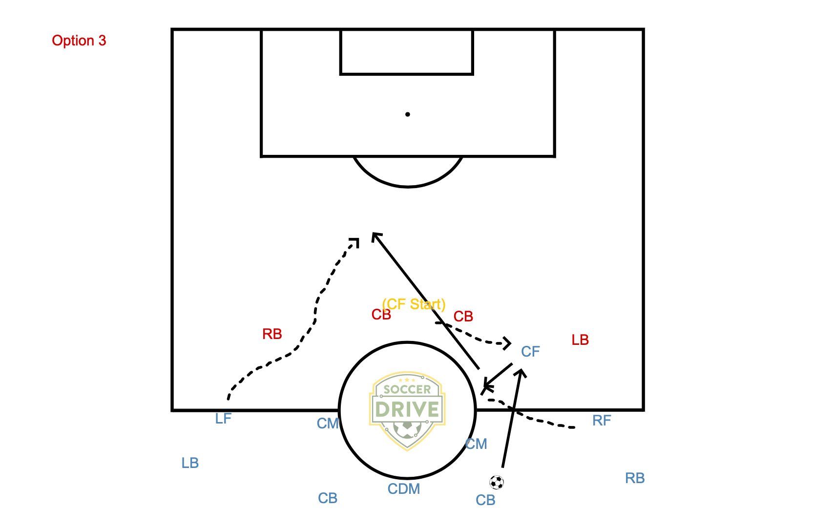 Option 3: Long- A combination which starts from deep, because of longer passing distances one-touch may not and should not be an option in relation to good timing and movement.