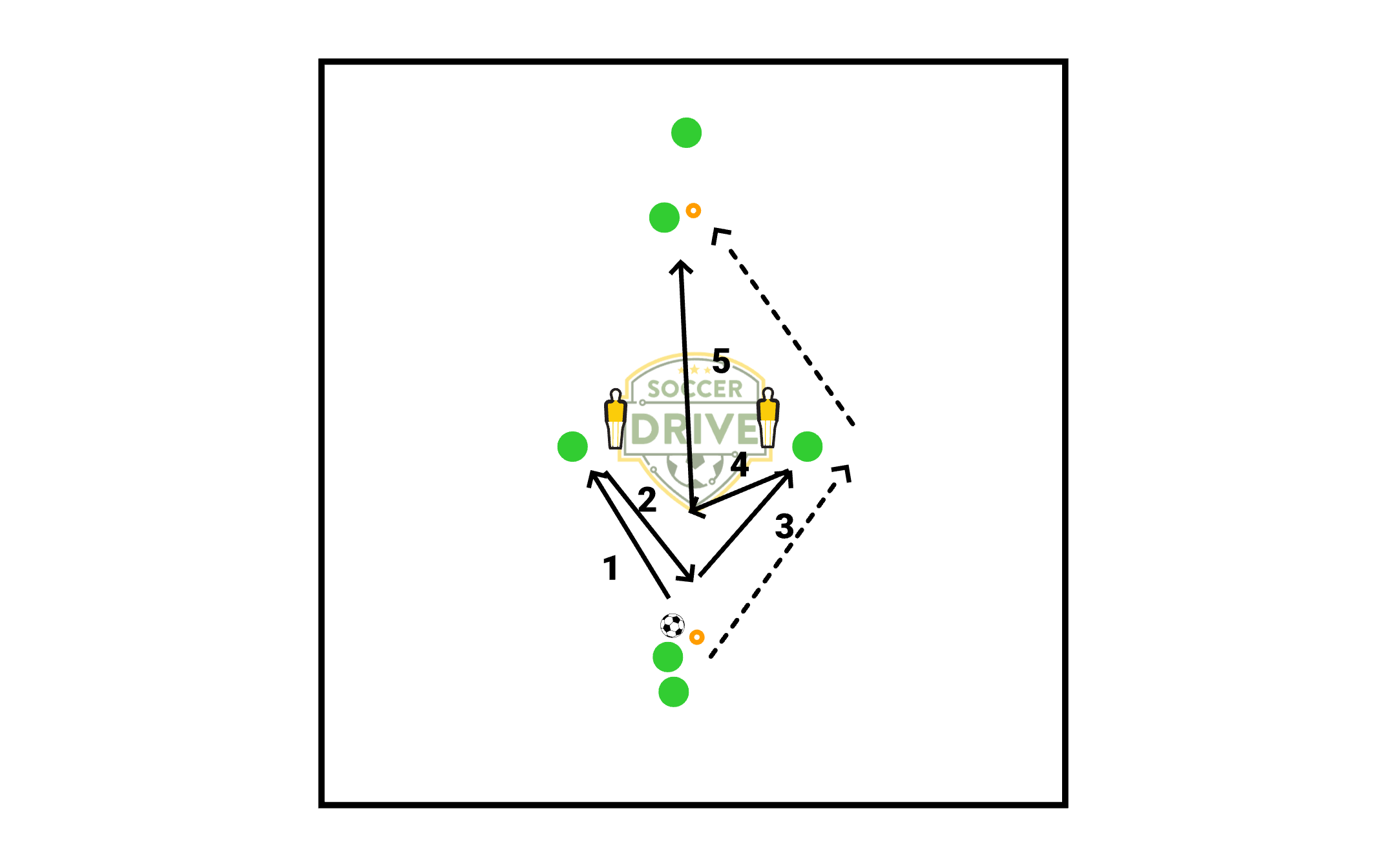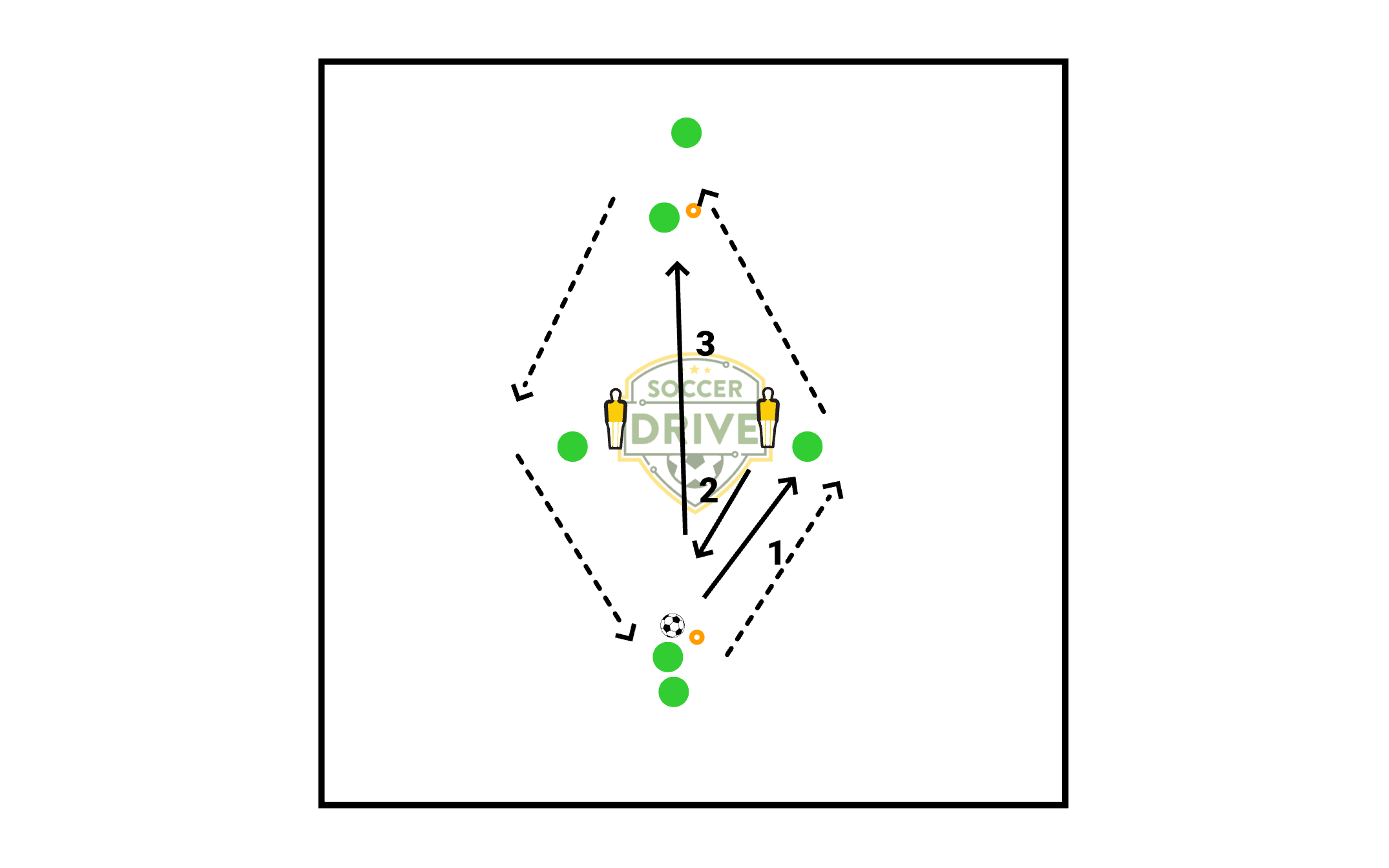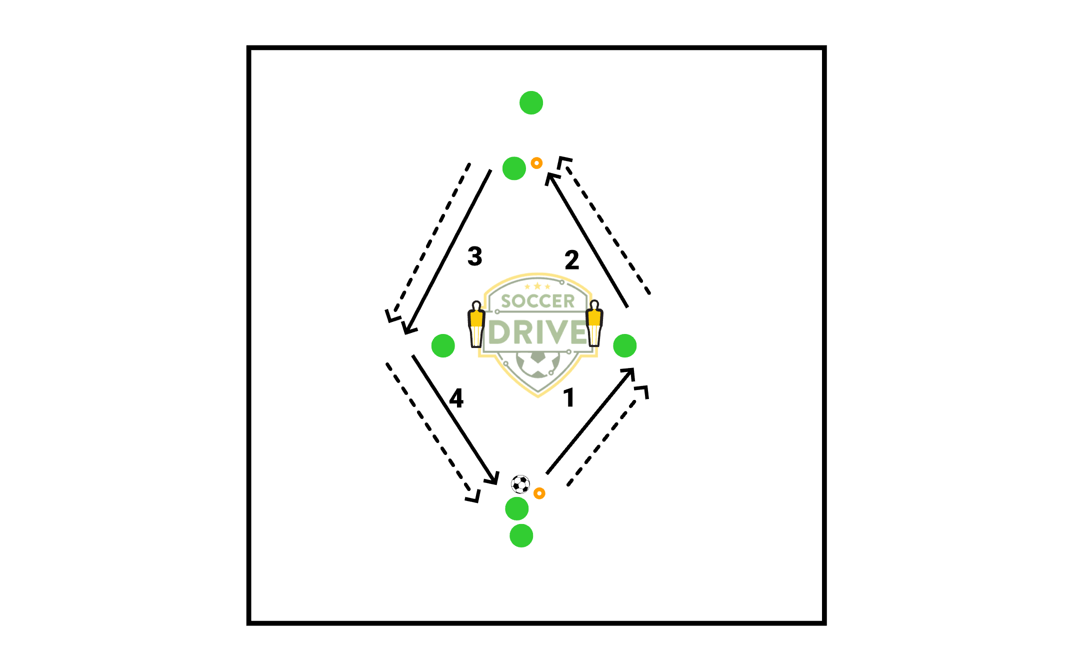 2. Pass around the diamond, follow your pass (Repeat in opposite direction)