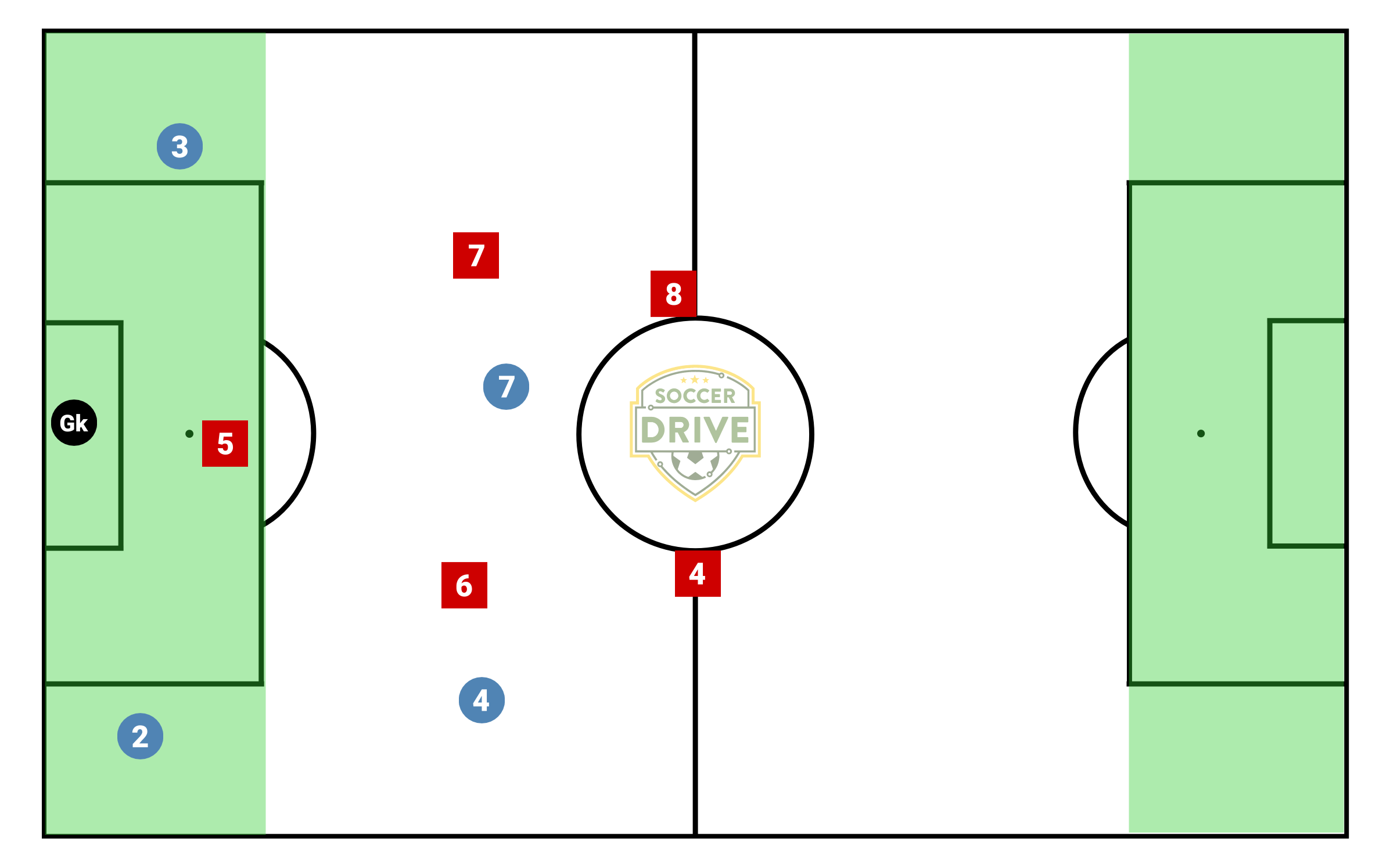 Variation - Can play it as a reset game so always starts with GK and objective is pass ball through a goal on halfway line