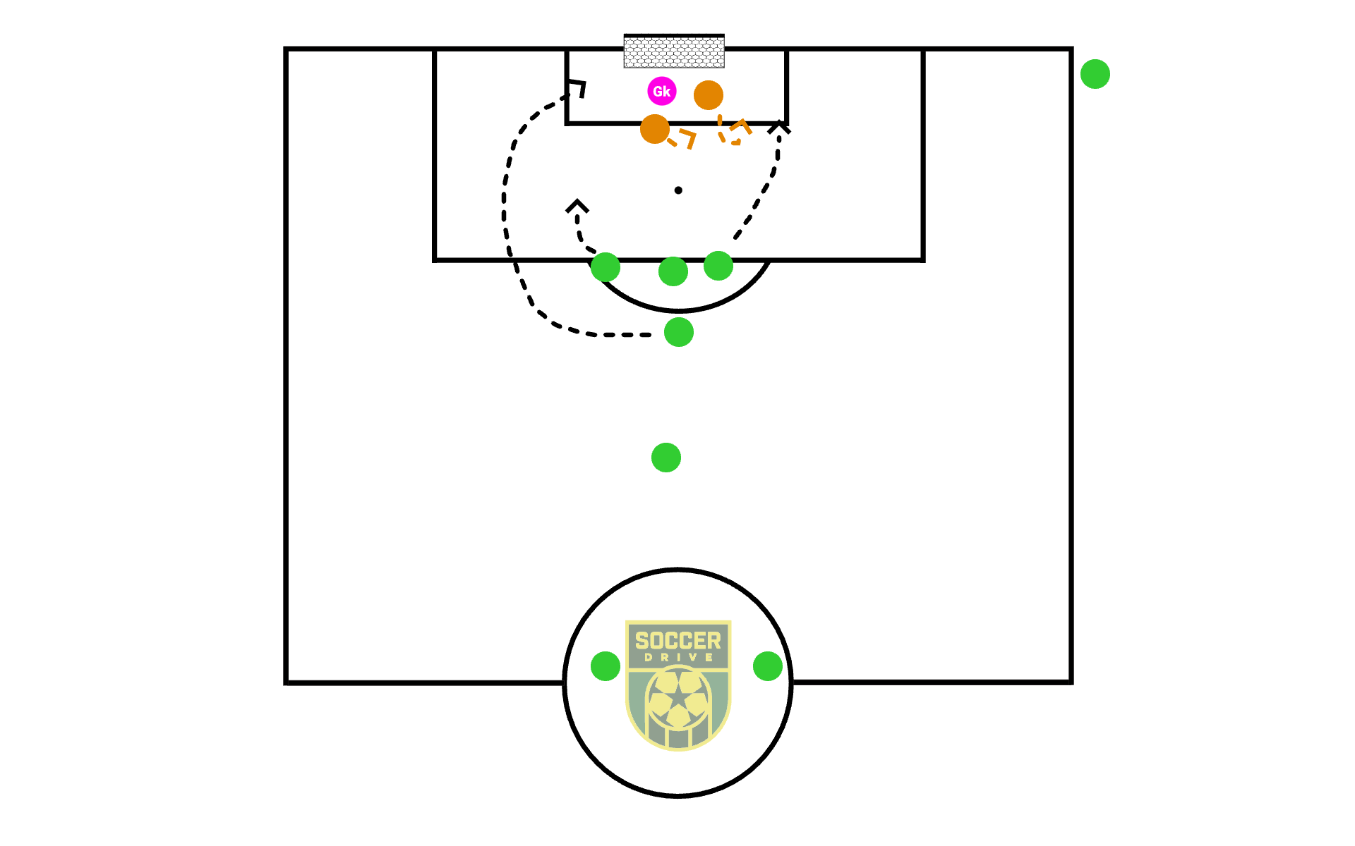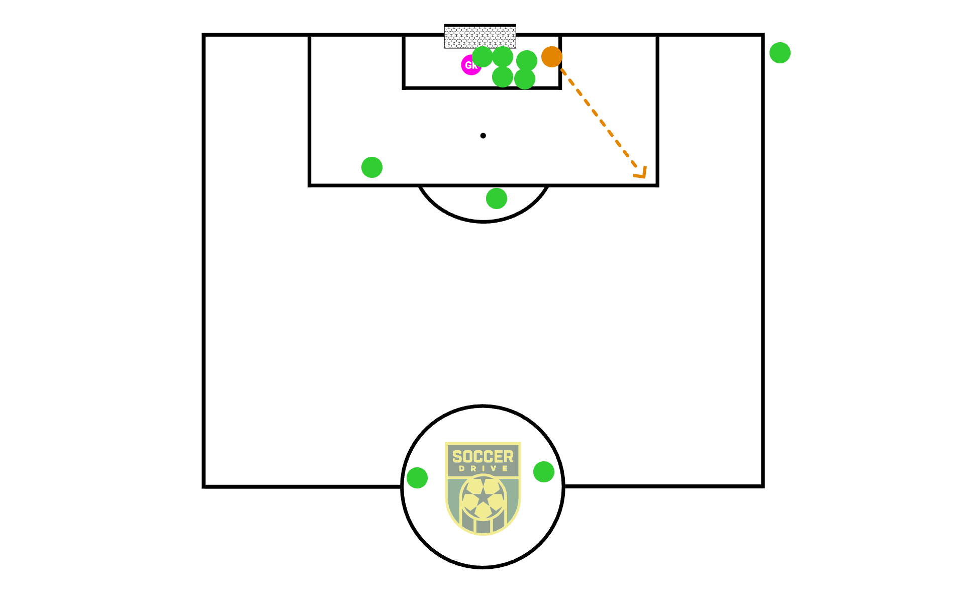 - Les trigges sont les deux joueur pret du but qui sortde la boite et vont en haut de la boite pret du 1er poteau