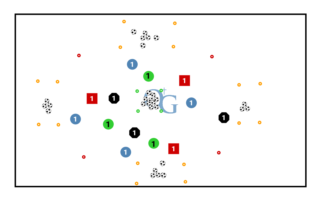 play 2 minutes. team with most balls at home wins.