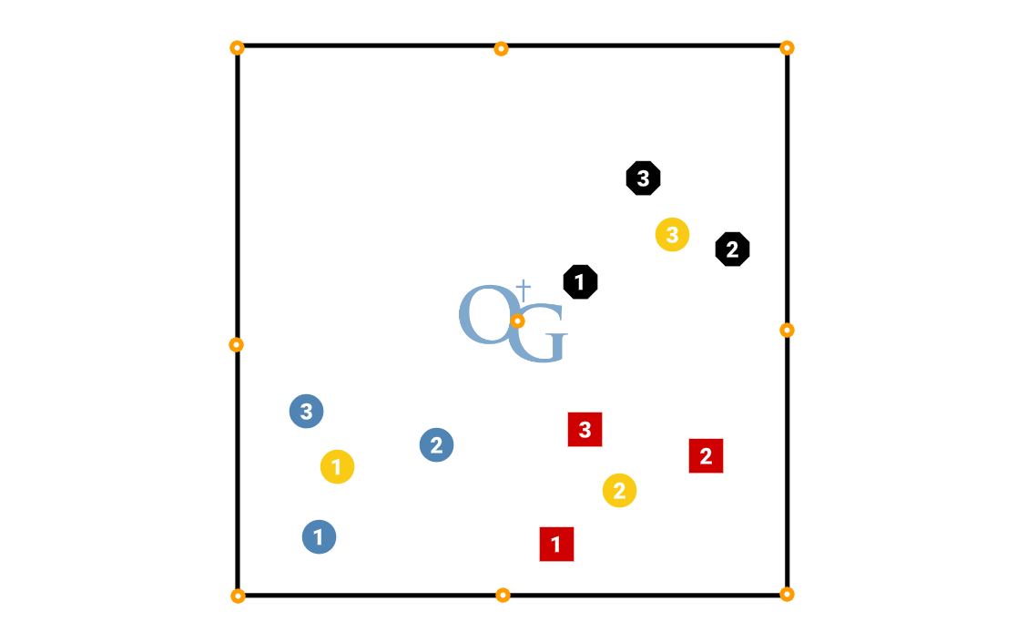 4 teams of 3 with bibs. Start with a 3 v 0 rondo in each quarter section. Call a color bib the three of that color play rondo against the other three teams. Once a lone defender clears the ball he may join to help team mates in the other grids.