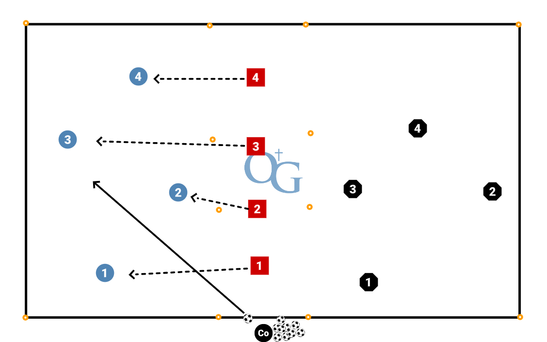 Once possession is stopped coach plays a ball to other side of 4 attackers.