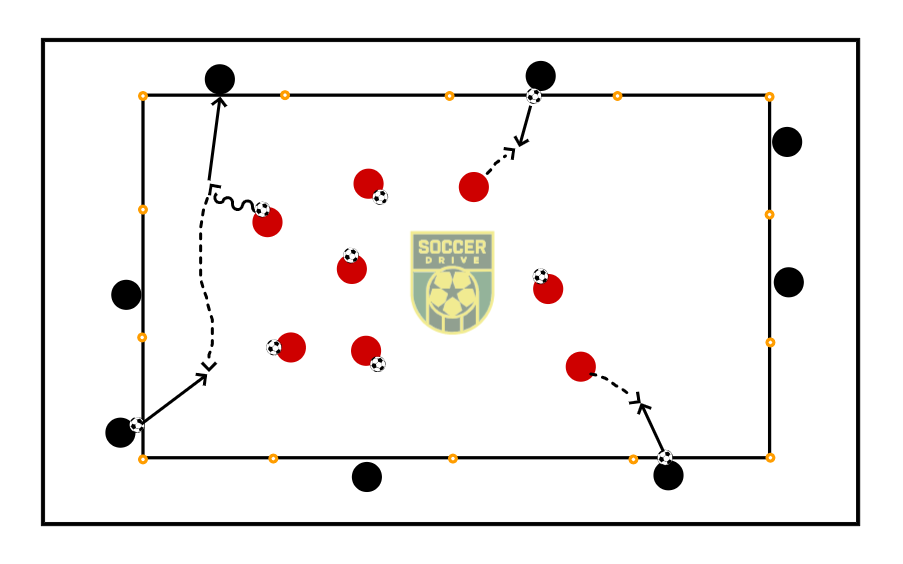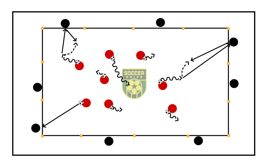*Variation* Players inside pass to outside and will find another player to pass them the ball.