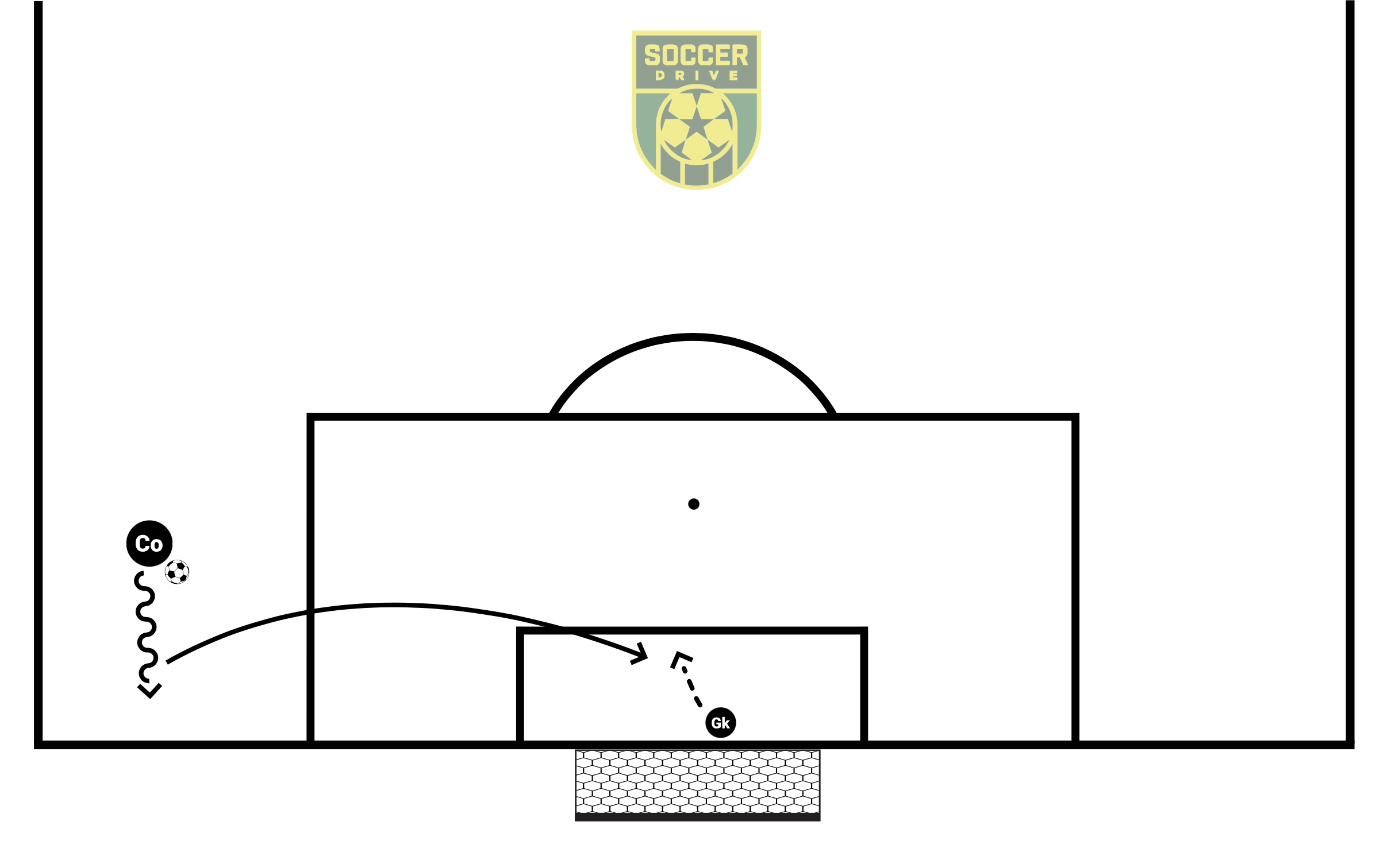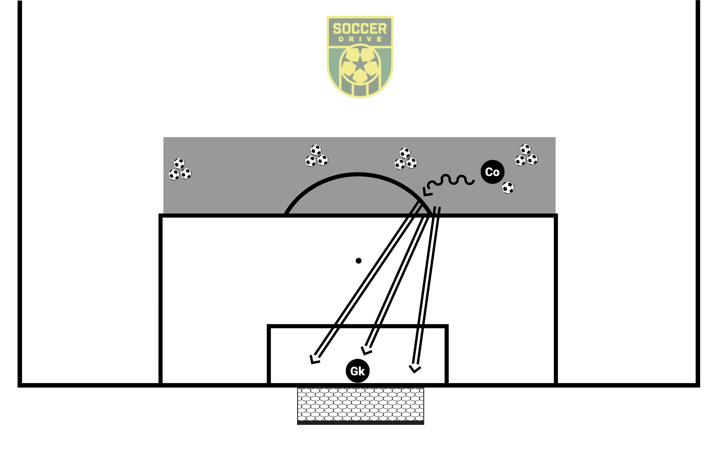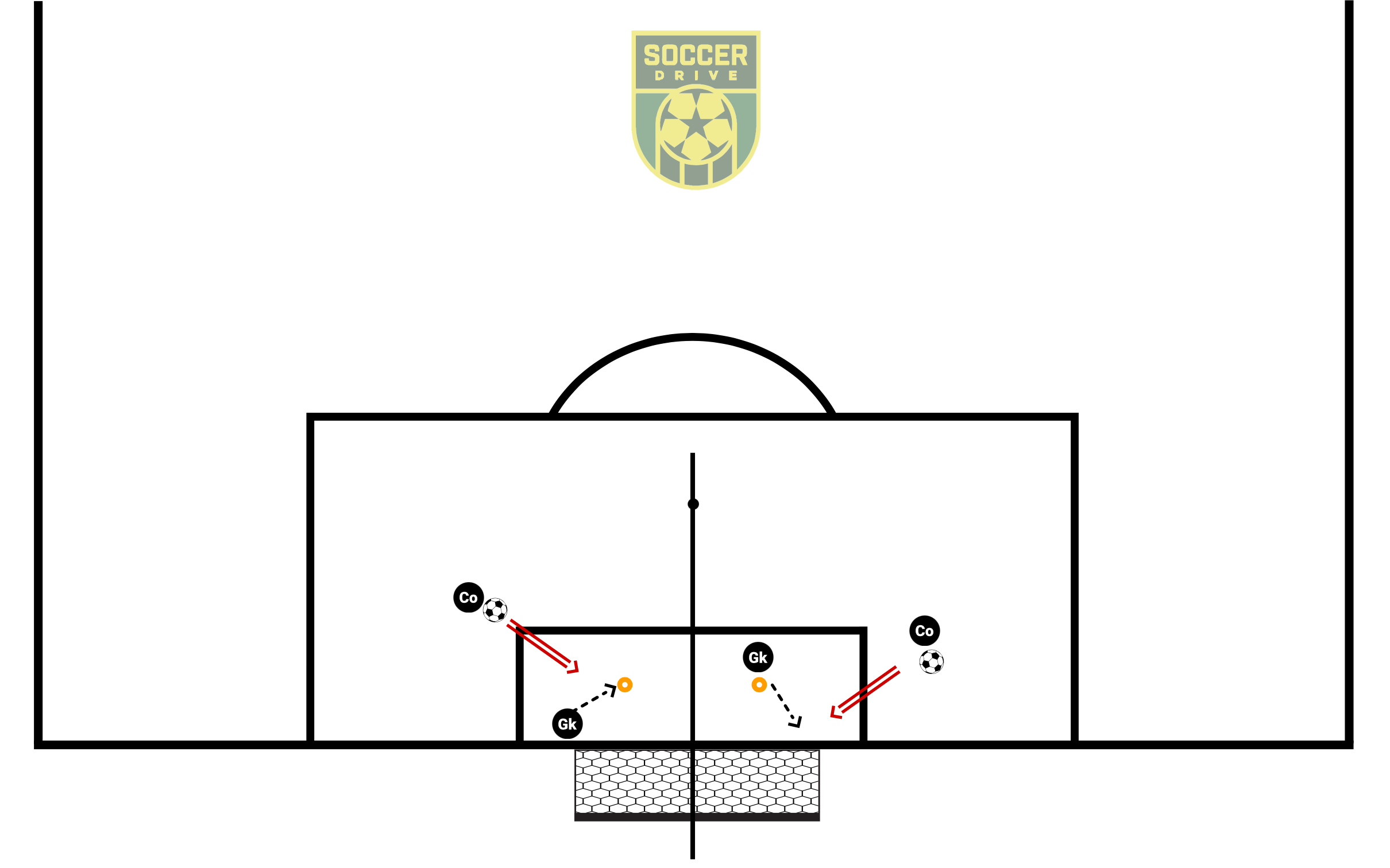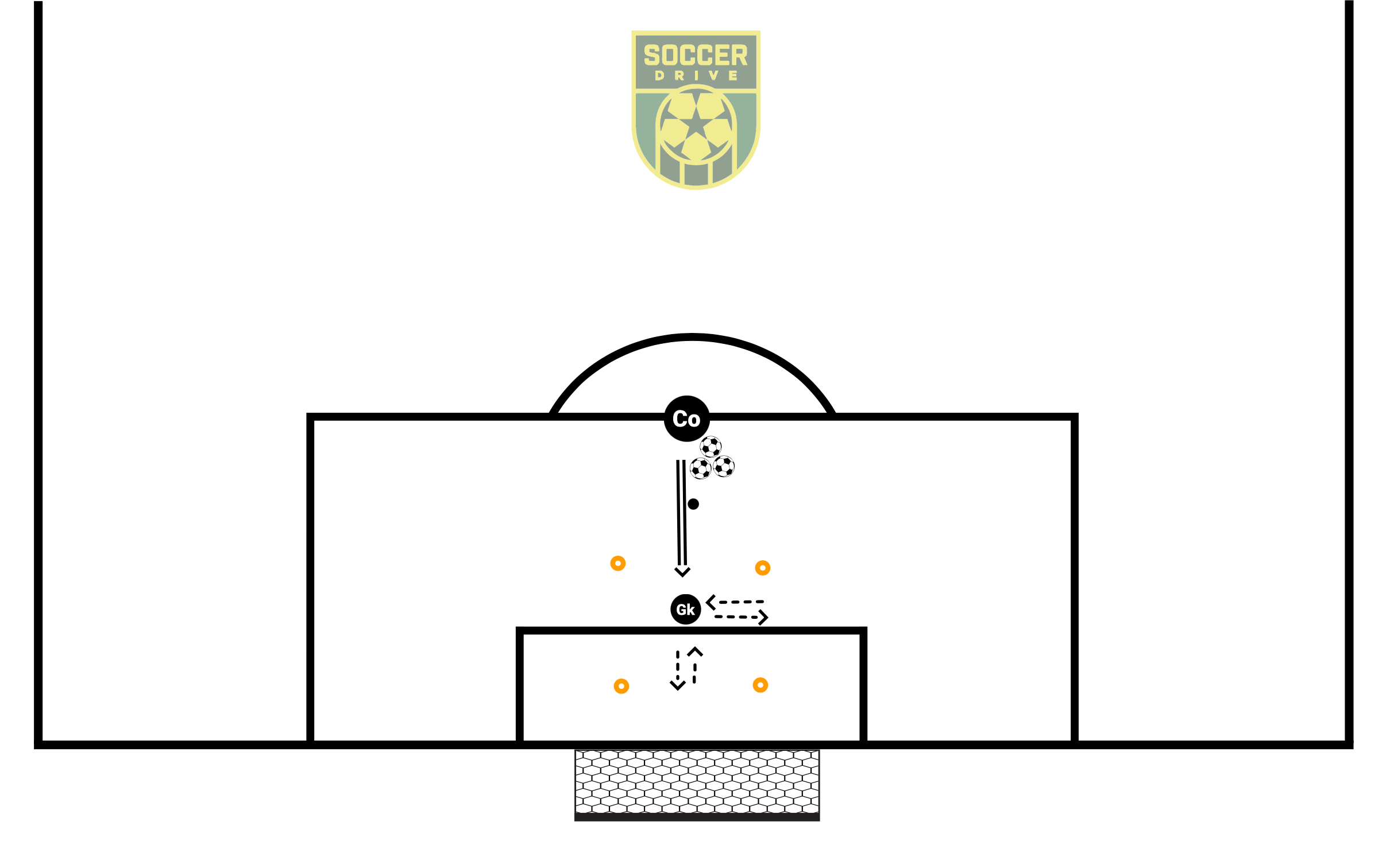 Example, when the gk shuffles to left side of the box then back middle you can do a low dive to the left side for a cutback situation, or have them dive to their right side for a more natural shift into a dive movement. When doing a diving progression, keep the front and back side of the box as a volley or front smother for ease of the drill.