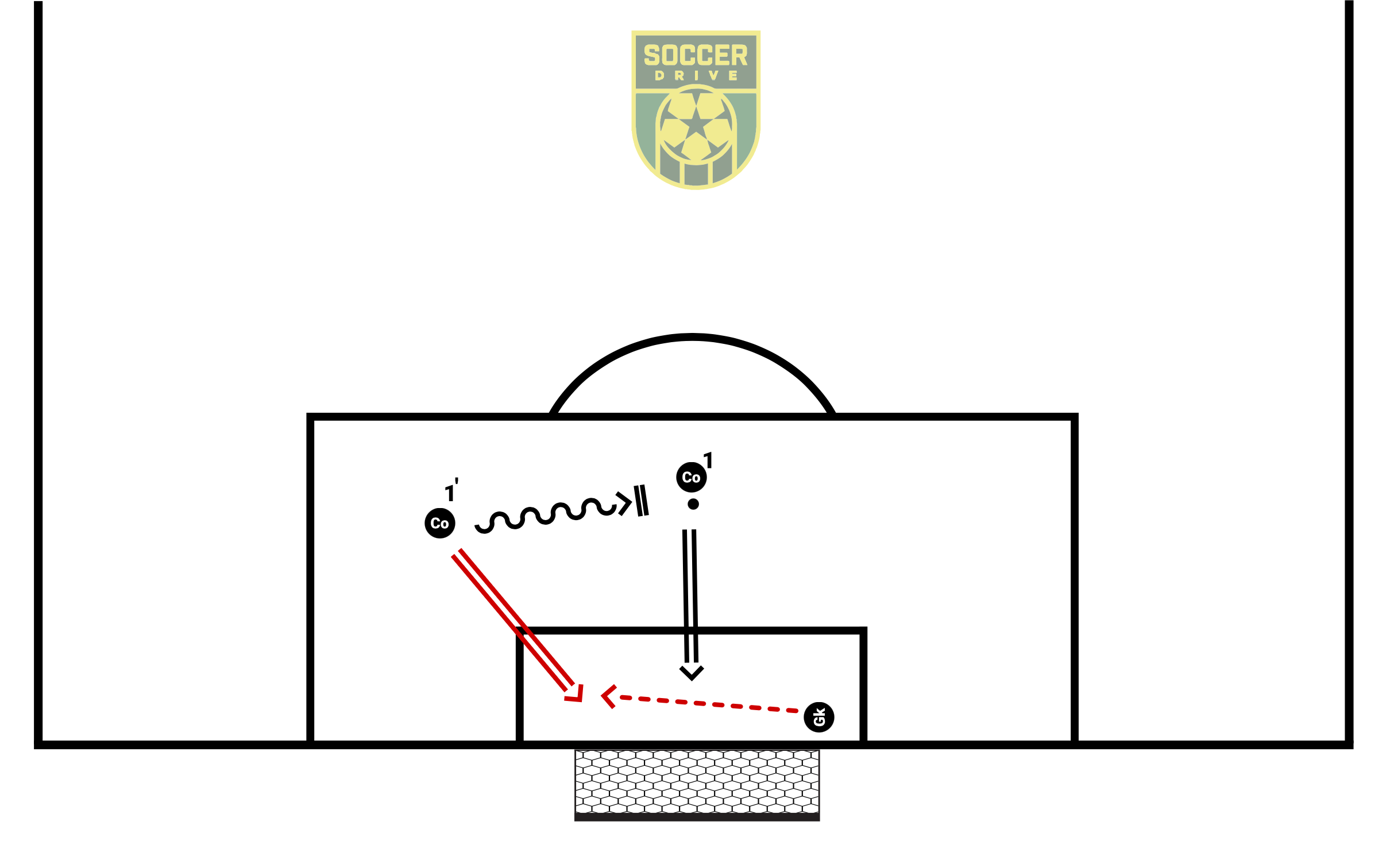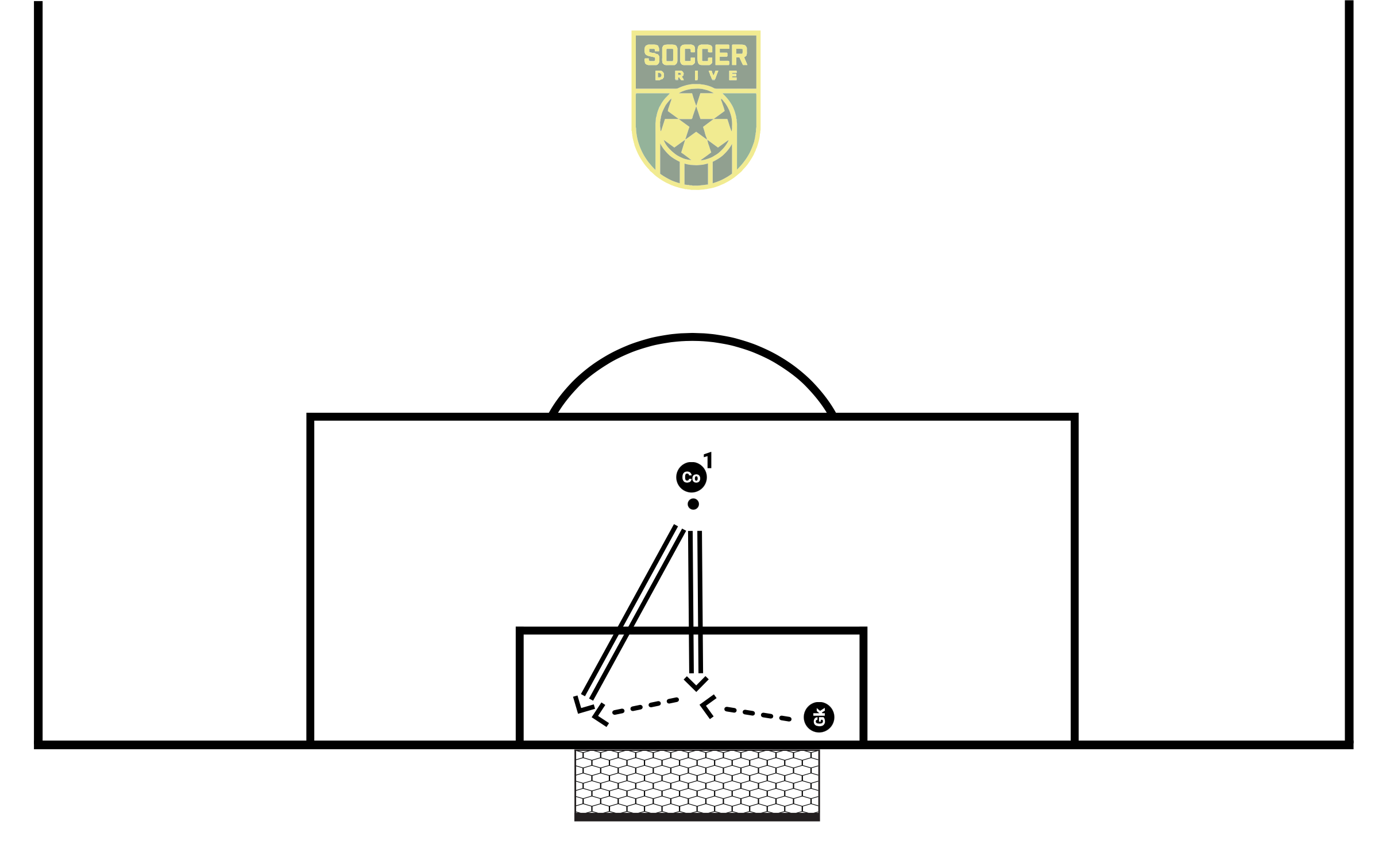 S1 will move and start at S1' spot. on "go" Gk shifts and finds S1' across goal for a shot then shifts to set for a shot from the server who takes a touch to be set up for a shot from the middle at S1 spot anywhere on frame.