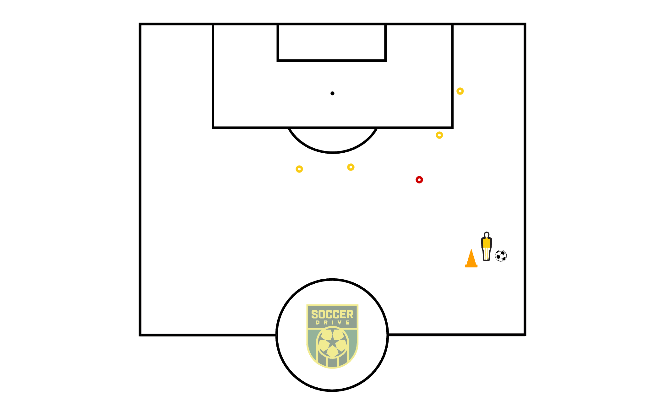 This drill is designed to give the winger the choice between cutting in for their shot of taking the line to finish across the goal