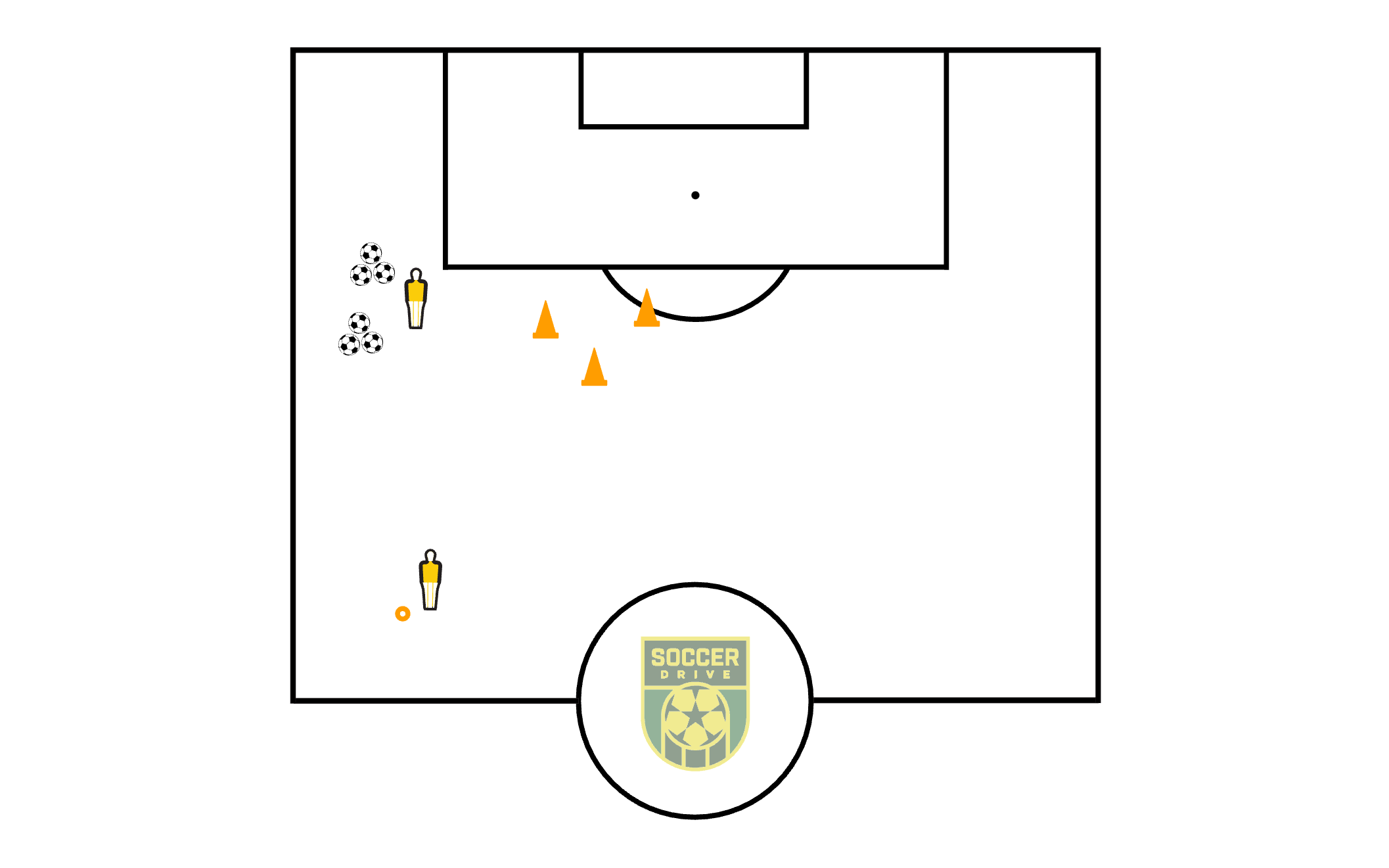 Progression 2: Coach plays a long ball in the air, and the player receives and dribbles adds a skill at the cone to finish