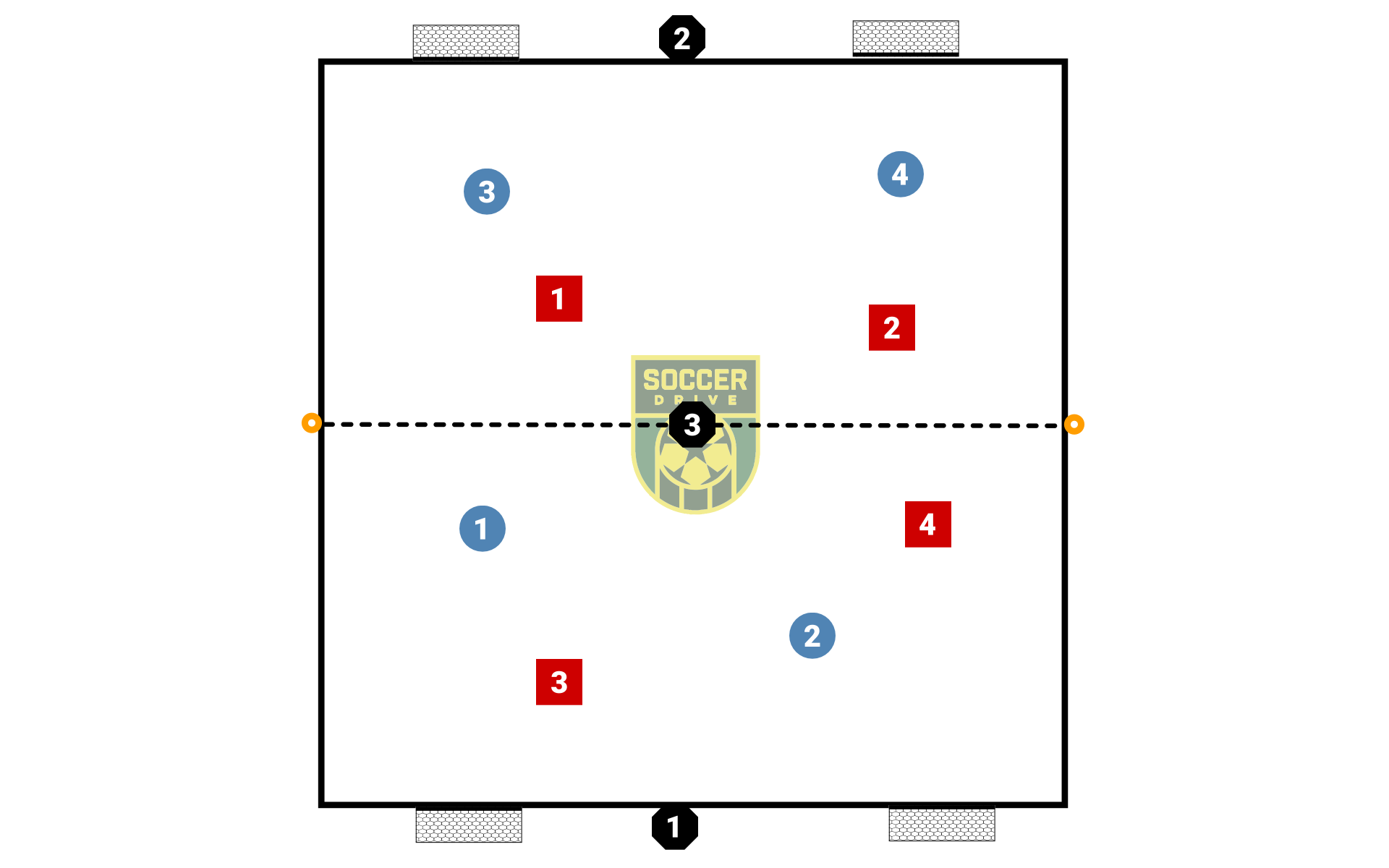 4v4 + 3 Rondo Conditioned Game with split field
