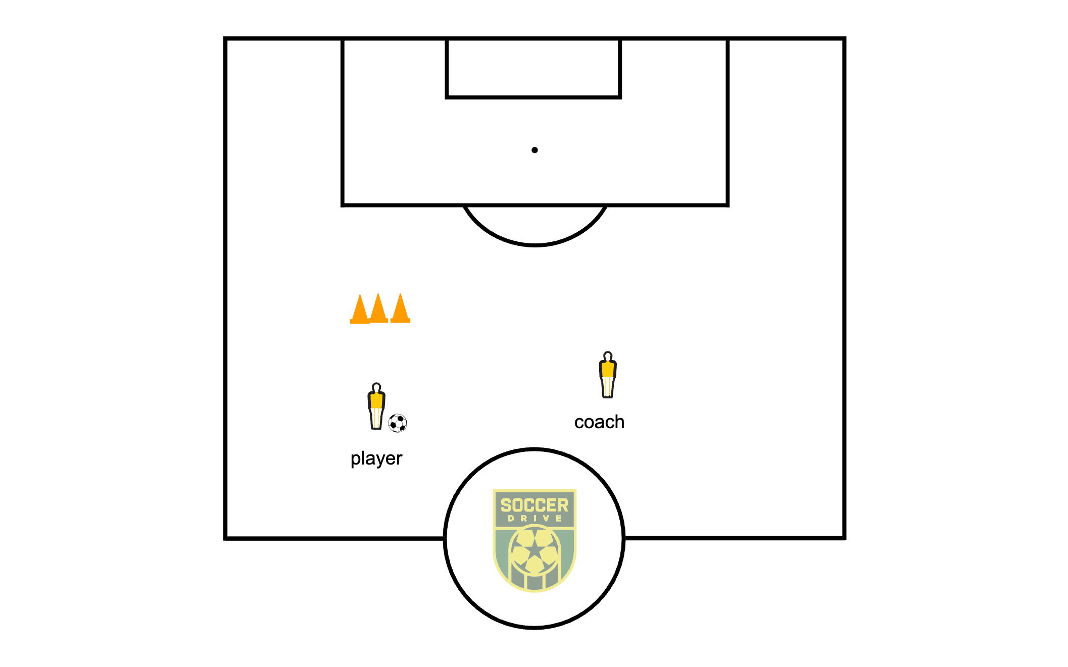 P1: receive left push out right foot finish (Minute 0:14- 0:22)