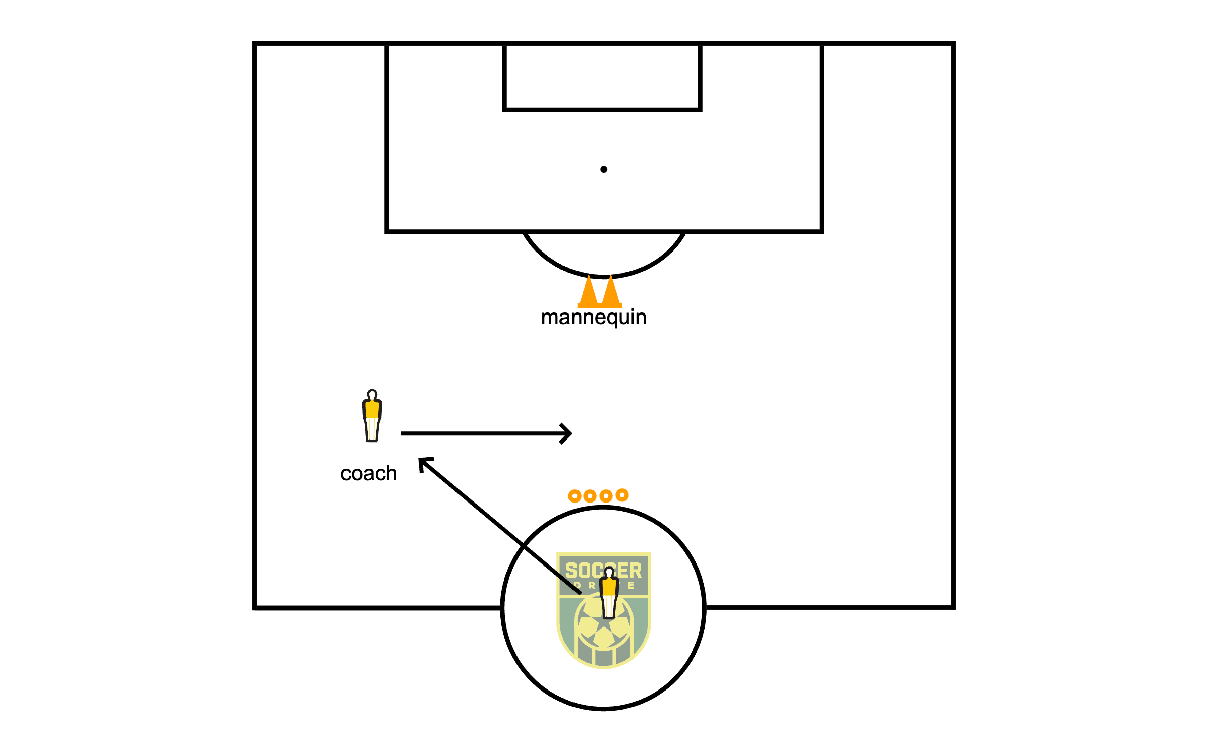 The player will perform a wall pass combo with the coach and then add a shift in front of the defender