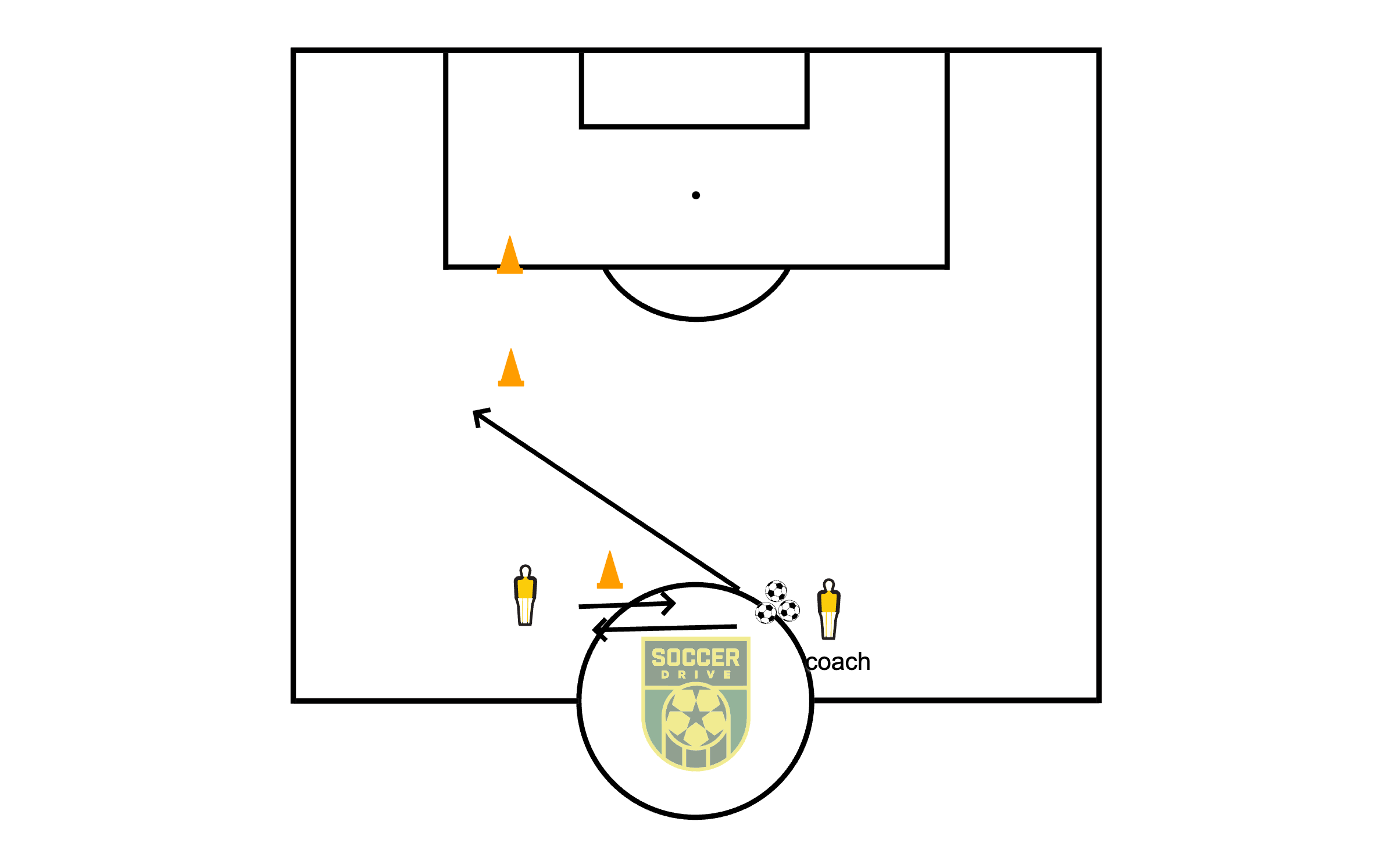 The player will connect a wall pass with the coach, once they get the ball shift to cut in and finish