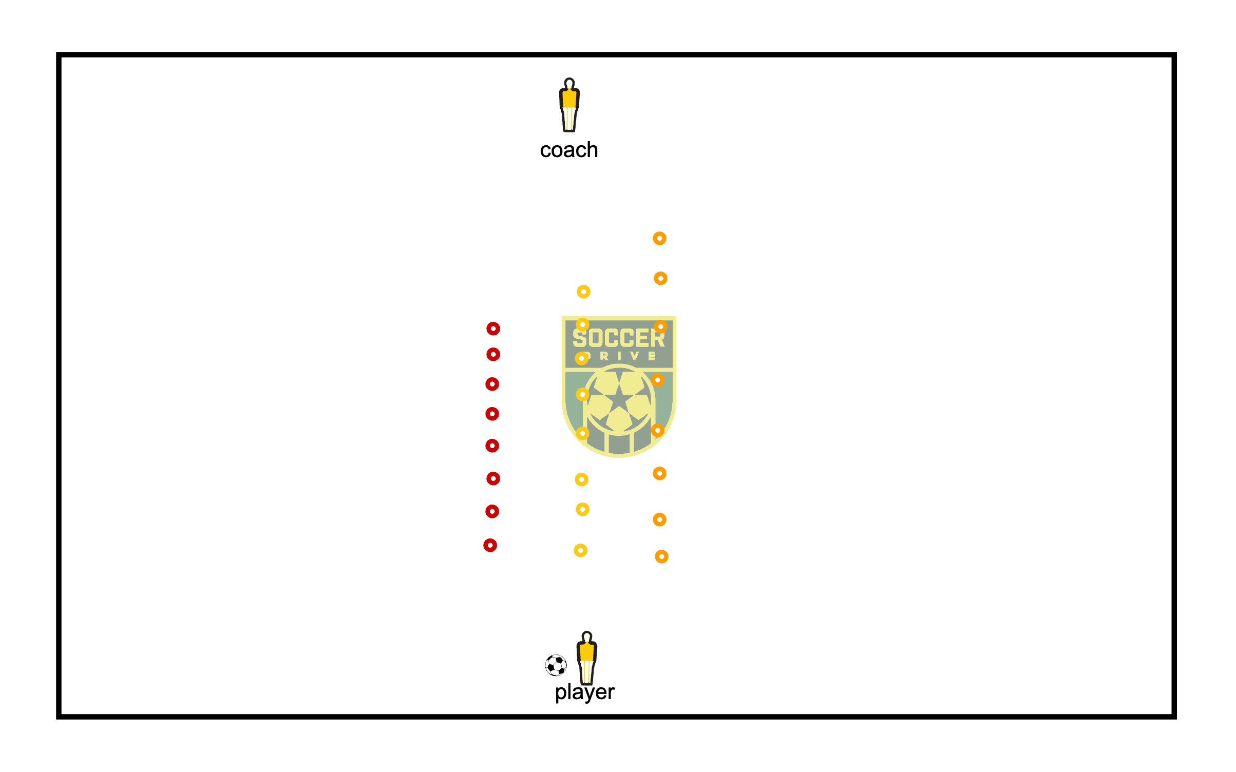 P3: The coach will hold up the color cone, once the player sees the color they will react and weave through that row ( minute 9:06- 9:42)