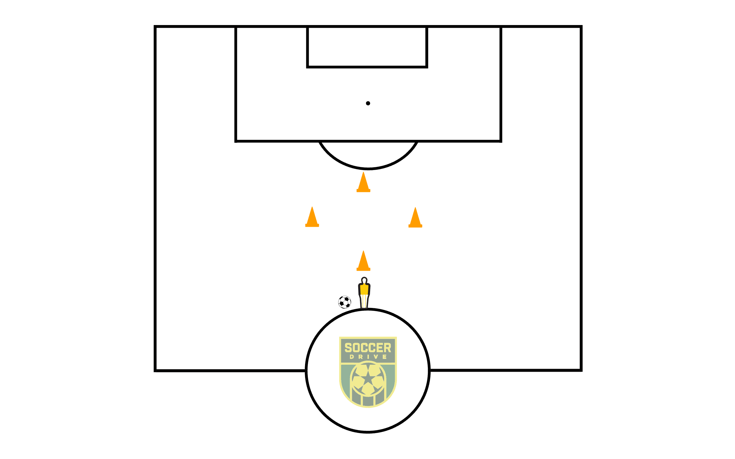 The player will start at the top cone and perform two shifts/cuts to get out the diamond and then shoot on goal.