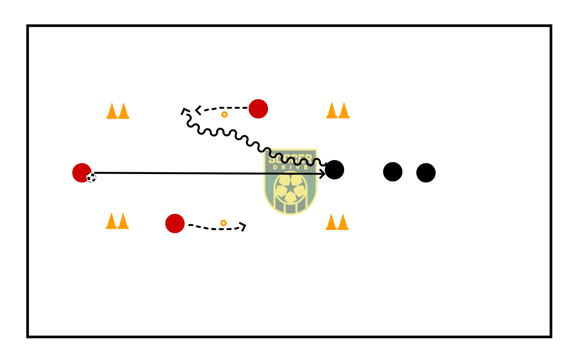 One player will pass into receiving player, who will attempt to get out on either side by beating the defensive players.