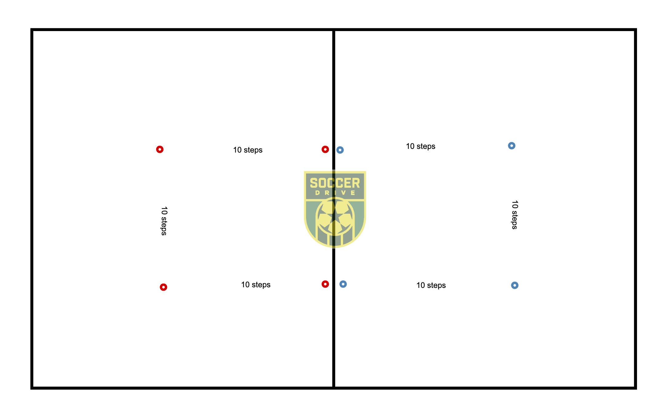 Divide players into 2 teams. The defense team will send one player into the other team's box. They will perform a rondo and the teammates on defense will try to win the ball back and ass it to their team.