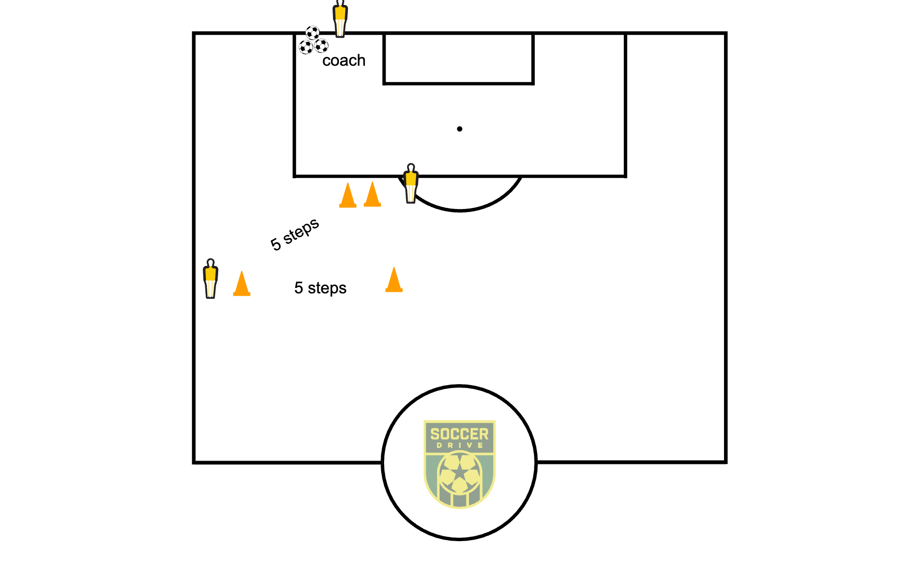 This is a great drill for more than 2 players to work on passing combinations to the goal.