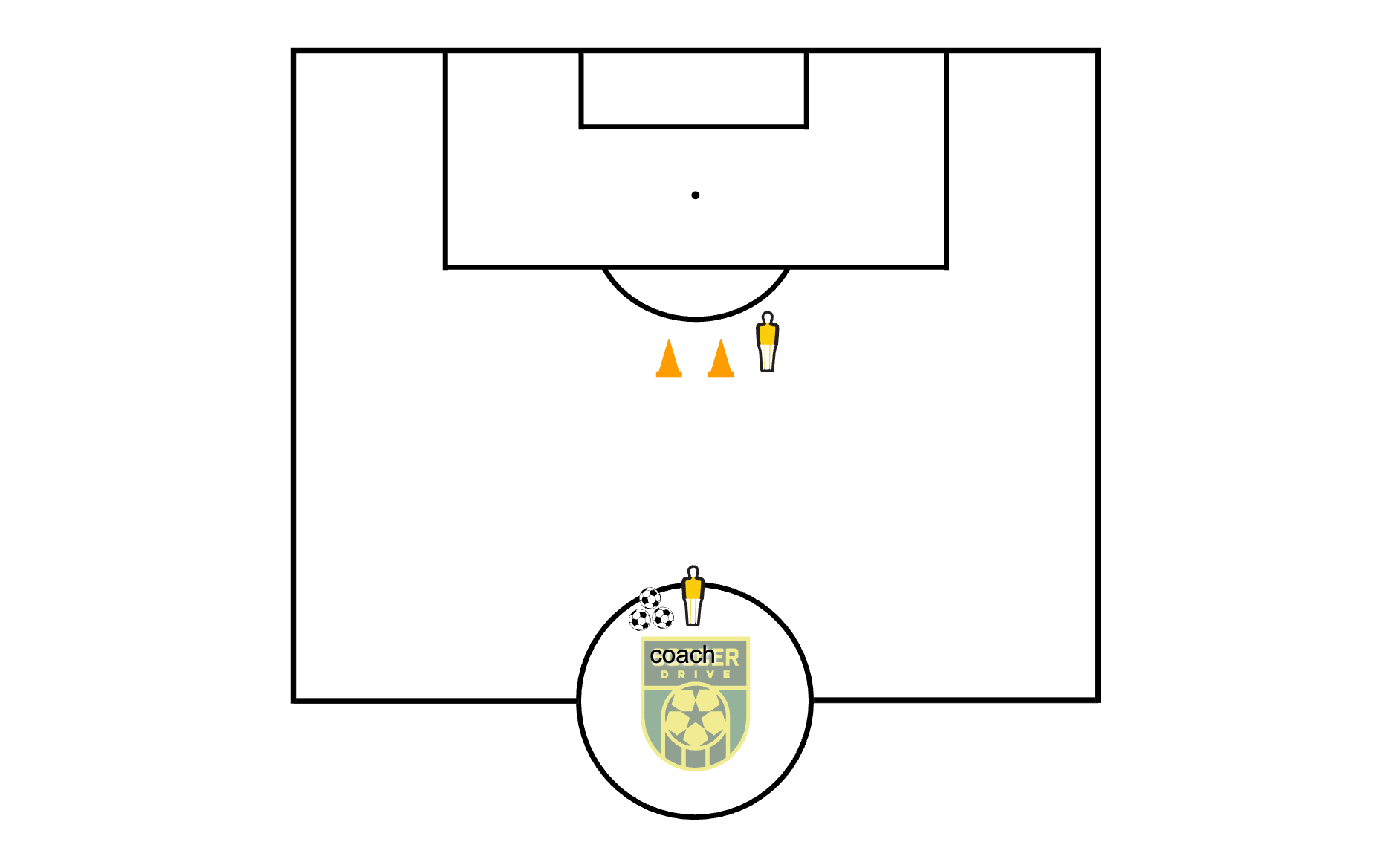 P1: 2 bounce passes--check to coach--skill before ball hits cone-- finish right foot ( as shown in video)