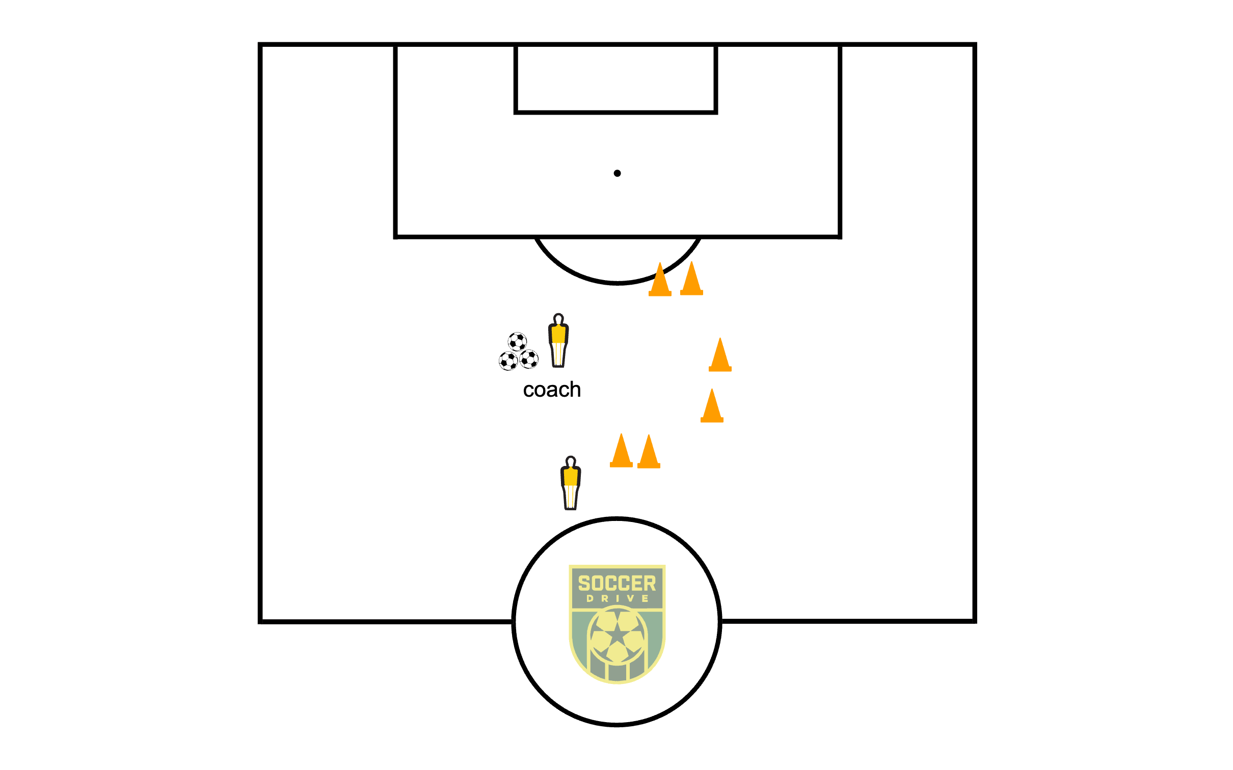 The players will work on their first touch out of their feet, and the coach will set the ball for them for a bender or pass finish.