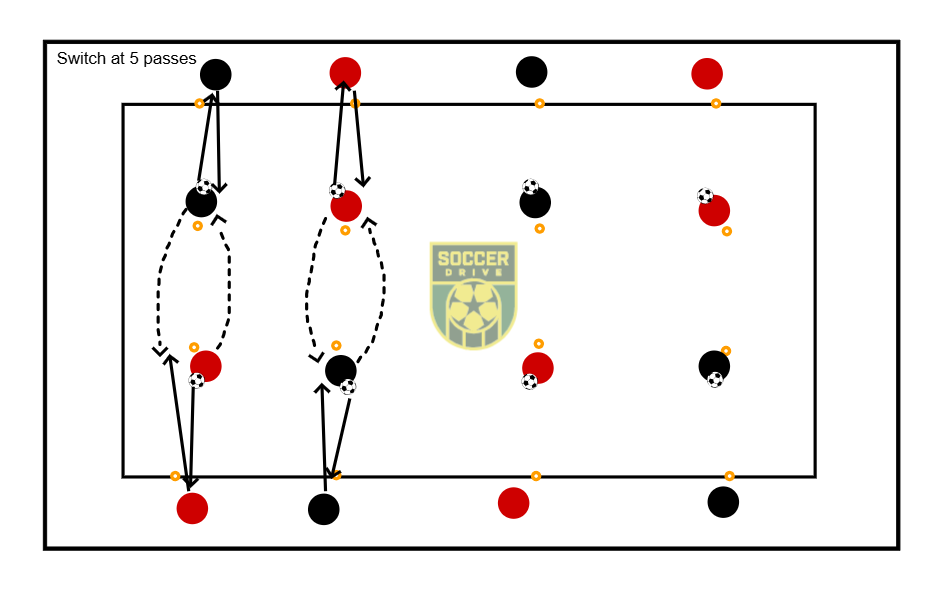 (20 minutes total. 5 mins per drill, switch at 2.5minutes)