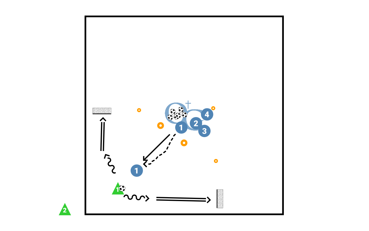 pass the ball to space, 50 / 50 ball. Go to either goal