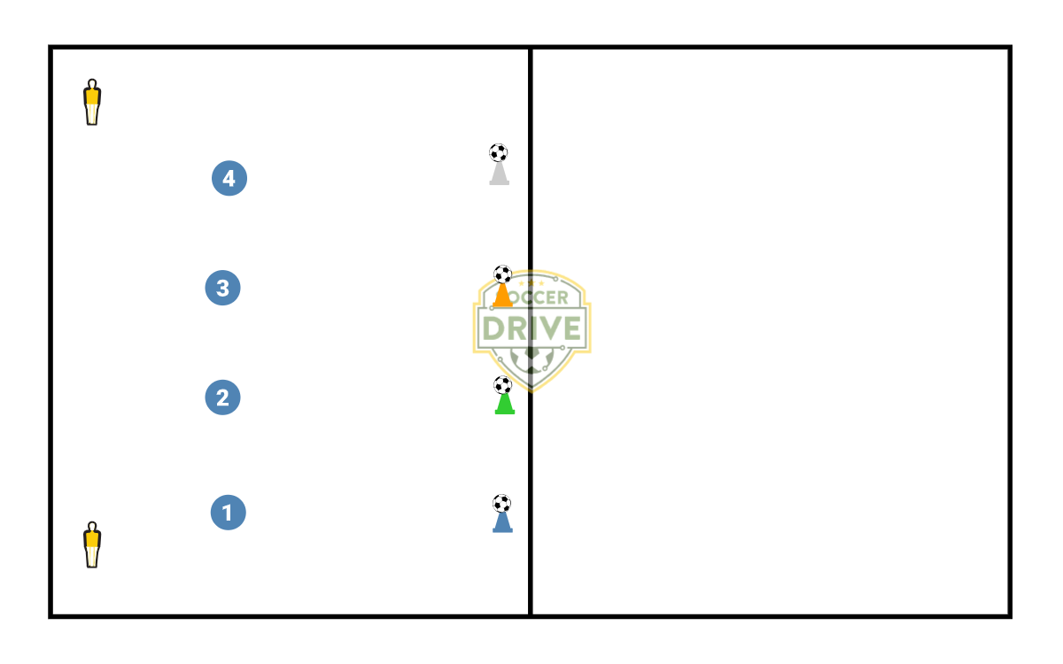 Call out a color and the player closest to the ball pressures and the others along the back line shift to cover and squeeze.