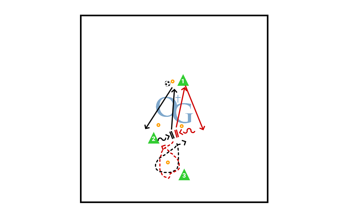 3 players 8 yards apart 4 cones in a diamond pattern player checks to gate receive across body to left and pass to server. back pedal to cone check to gate receive across body to right back pedal to cone. Two left / two right then switch with player 3