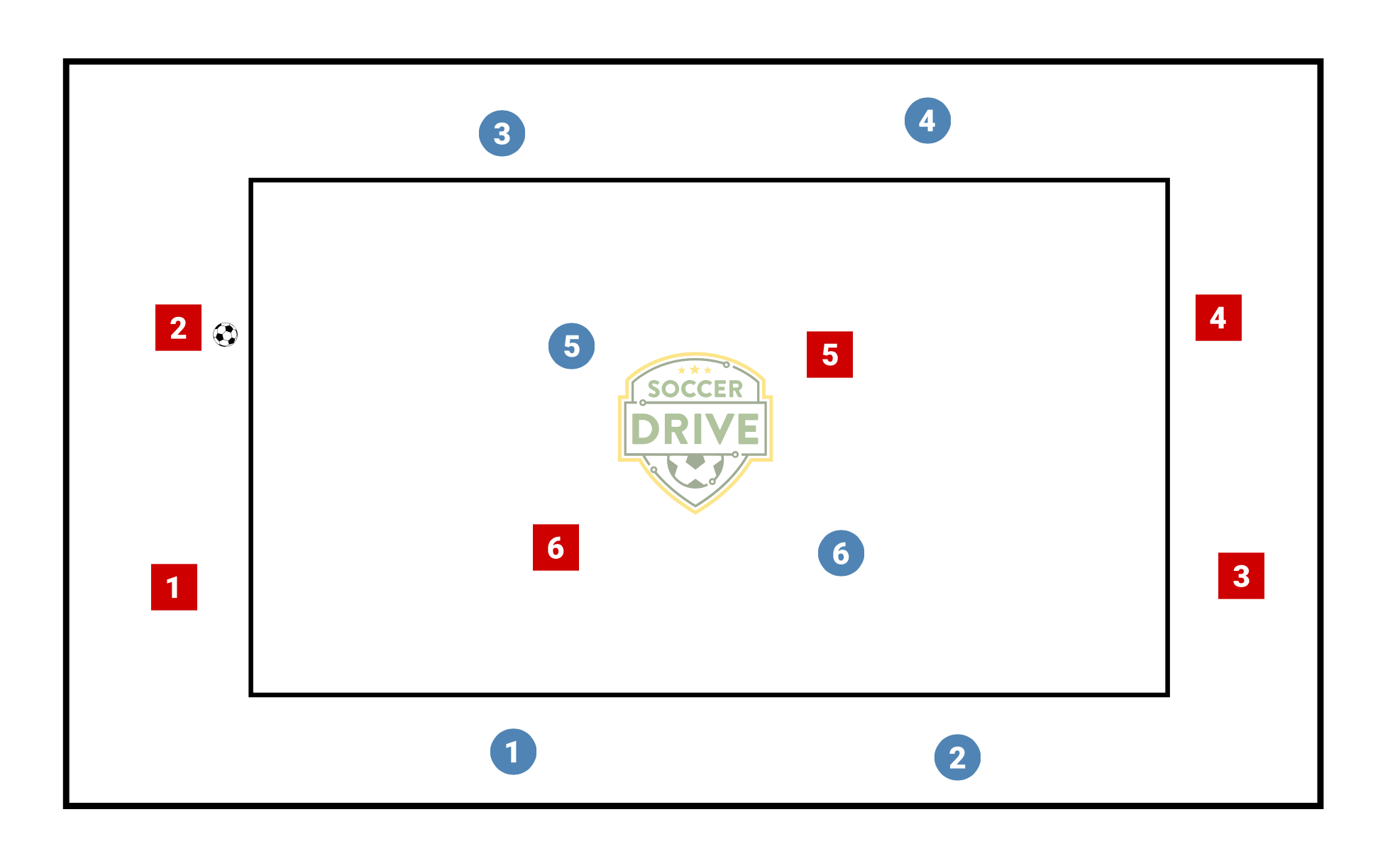 *Objective: To transfer the ball from one side to the next as efficiently as possible *2 players are working in the middle and using wide players. Wide players can use one another *If the team in possession loses the ball/goes out of bounds, its the other teams ball *Can progress to one/two touch only