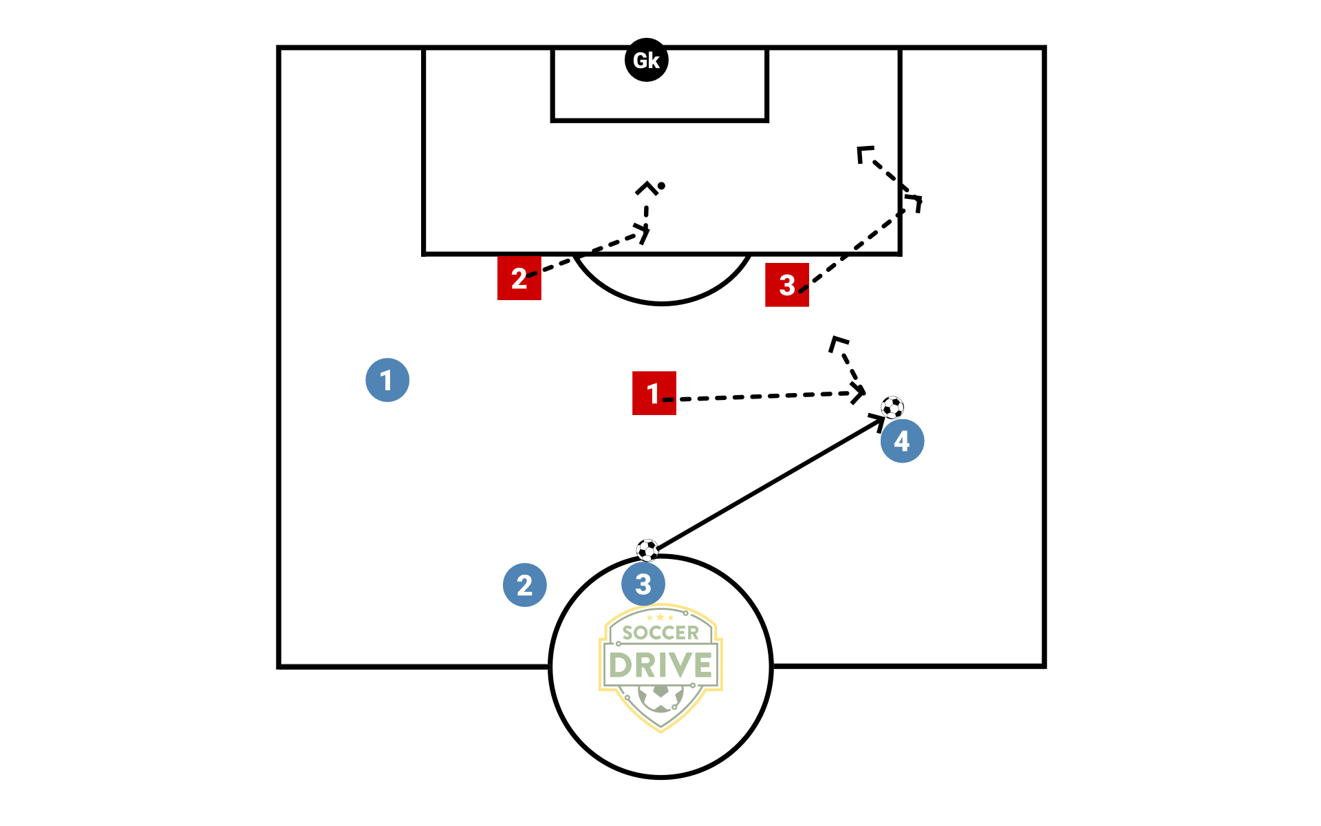 Defend the Box. 1 player is always pressuring the ball. 1 Player is always covering the first player, off their shoulder in case the ball passes them. Final player is always looking around balancing the defense and preventing open players running in. Theses roles change all the time as the ball moves. Defenders communicate and keeper also organizes defenders. Defenders aim to clear the ball backup the field, not out