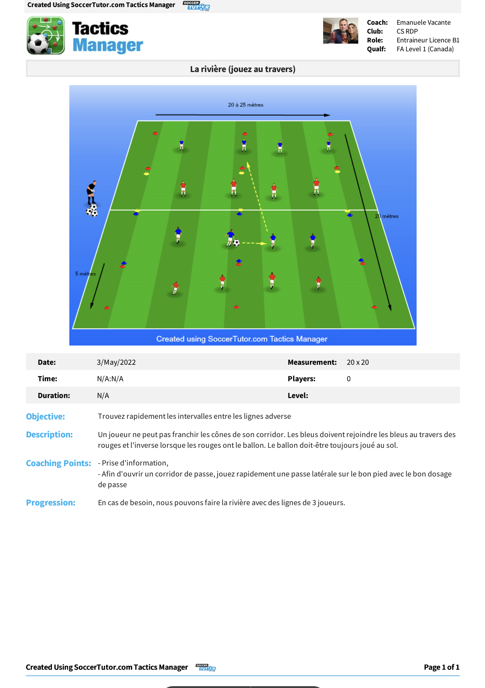 Un joueur ne peut pas franchir les cônes de son corridor.Les bleus doivent rejoindre les bleus au travers des rouges et l'inverse lorsque les rouges ont le ballon. Le ballon doit être toujours joué au sol.