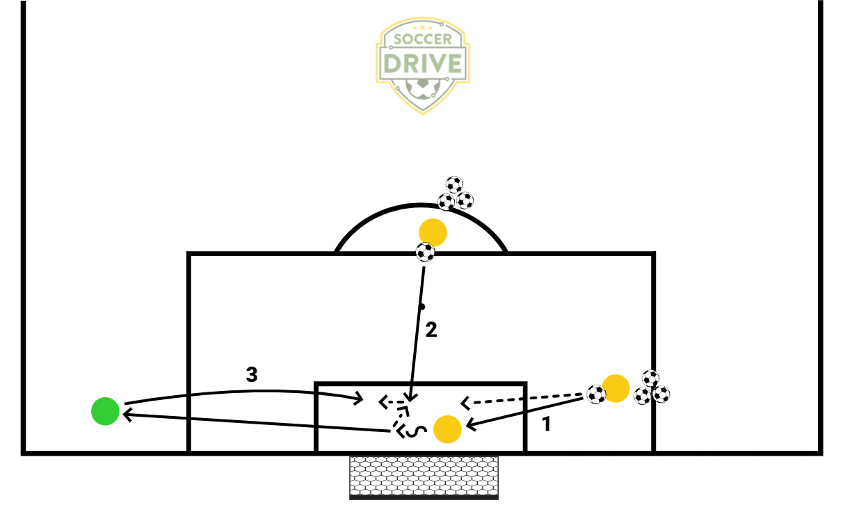 • With crosses, the goalkeeper should always have the feeling that both top corners are covered and that the goalkeeper can get to the ball when the ball gets played there.